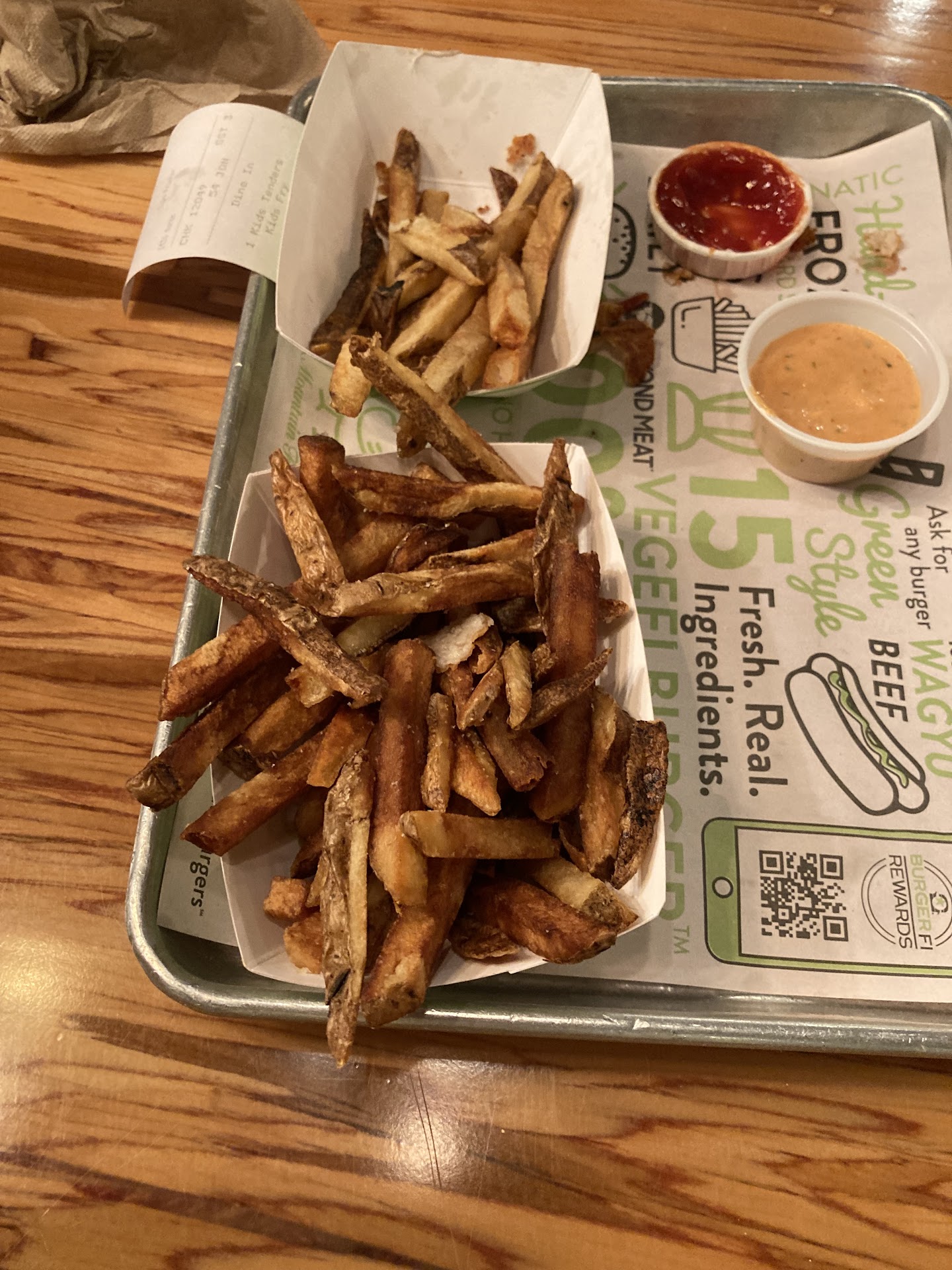 I recently ordered food from BurgerFi for delivery to my office, and I have some thoughts to share. The highlight of my order was "The CEO" hamburger, which was not only sizeable but also packed with great flavors. Accompanying it were truffle fries that, while tasty, lacked the desired crispiness I usually prefer. It's worth noting that this is not an issue exclusive to delivery, as I've experienced the same concern when dining in at the restaurant.