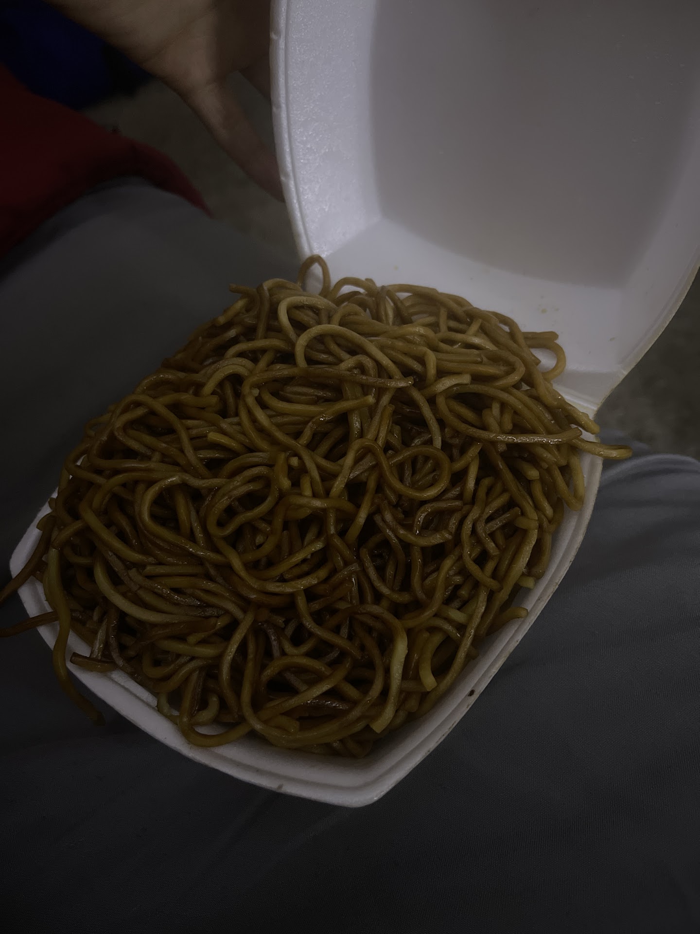 Terrible. 1. The Krab Rangoon...lumpy gritty cream cheese no crab. 2. The honey garlic wings...the honey glaze liquid no garlic, I doubt there was even honey...the meat was okay. 3. The general tso "chicken" =flour and chicken fat maybe rolled into a ball and painted w/a mysterious cherry red sauce that had no flavor...it may have been sweet &sour instead of what I actually ordered. 4. The chicken lo mein... it just made me sad. It was DRY AF, I've never had noodles that dry. So I'll assume they were cooked this morning an left in a big bowl all day and night and they only scooped out what they needed. This lo mein was flavorless, lo mein felt and tasted like regular spaghetti noodles covered w/ browning. While I commend the generous heaping of lo mein, I see why I got such a large container. They were probably trying to get rid of it before the night was done. Here it goes: