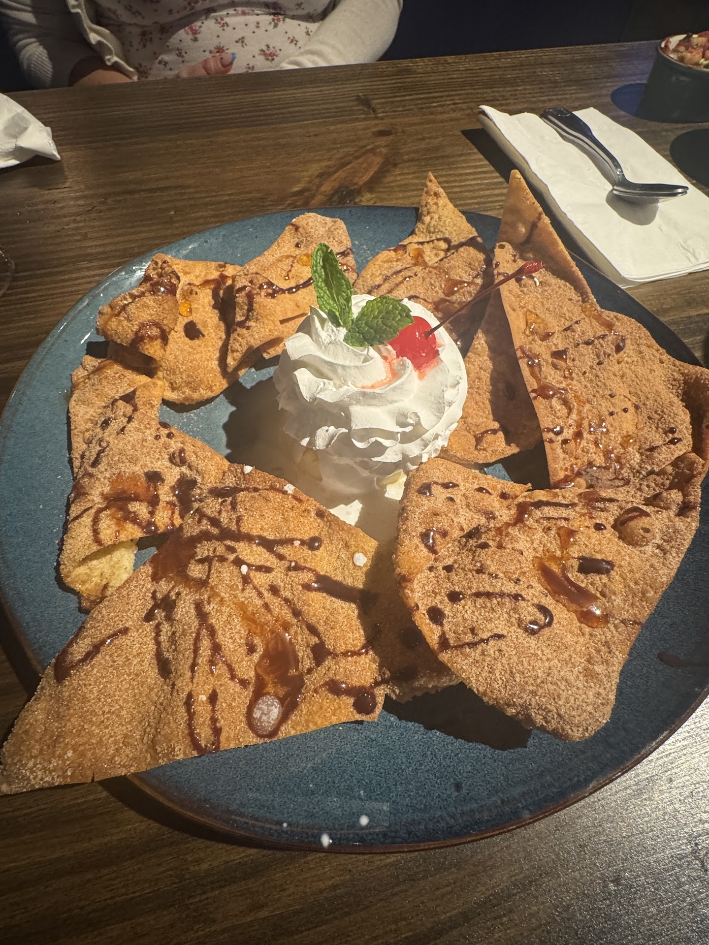 Despite being stuffed, we couldn't leave without dessert. Saw sopapillas on the menu and nostalgia took over. Came with cinnamon and ice cream. That combo is pure dessert heaven for me.