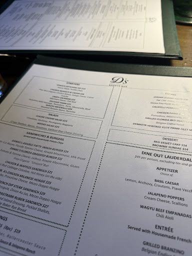 Read moreWe came in for the first time to check it out as we were really excited to have a new spot in the area. Sat at the bar to have drinks. The prices to drink quality and service are extremely far apart. The Cocktail list was very minimal which was a surprise. However, we decided to go with their suggested Margarita. The margarita was $20 and very subpar..lacked quality and flavor. We asked if they had any mocktails and the first bartender told us no. Another bartender came by and we asked her about mocktails and she was able to provide one. It was decent yet $10 but the bar staff took the leftover mocktail mix and added alcohol to it to take shots, rather than giving me my full money's worth. The moral of the story is that this bar has potential and if you like football In a more upscale environment rather than a sports bar, with what we have heard, decent food, you will be happy. Unfortunately, what they're trying to do is a higher end sports bar with upscale prices to match the steakhouse, yet the drinks offerings and the service do not hit the same mark. If this was a standard bar and the prices matched that of regular Fort Lauderdale, we wouldn't have had so many feelings about our first experience. Elevated reputation = elevated...