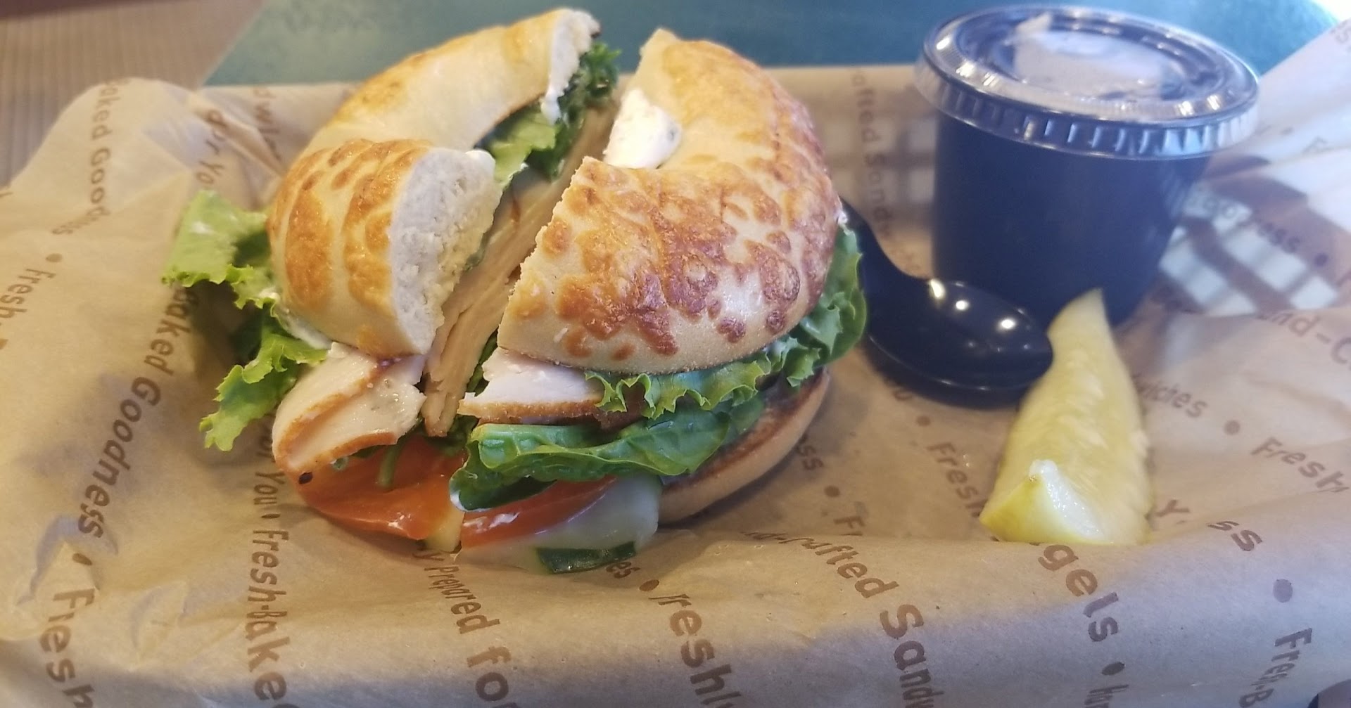 Food - Freshhhhhhh, yummy, hot and certainly a whole party in your mouth. Food is made to order of course , there is a whole selection of meat egg, turkey , bacon, ham, salmon, brisket that you can put on your sandwich. Any type of bagel you need this location has it. If u need even a simple bagel and cheese not a problem. The coffee drinks are great and desserts just pick n choose better yet just take it all .