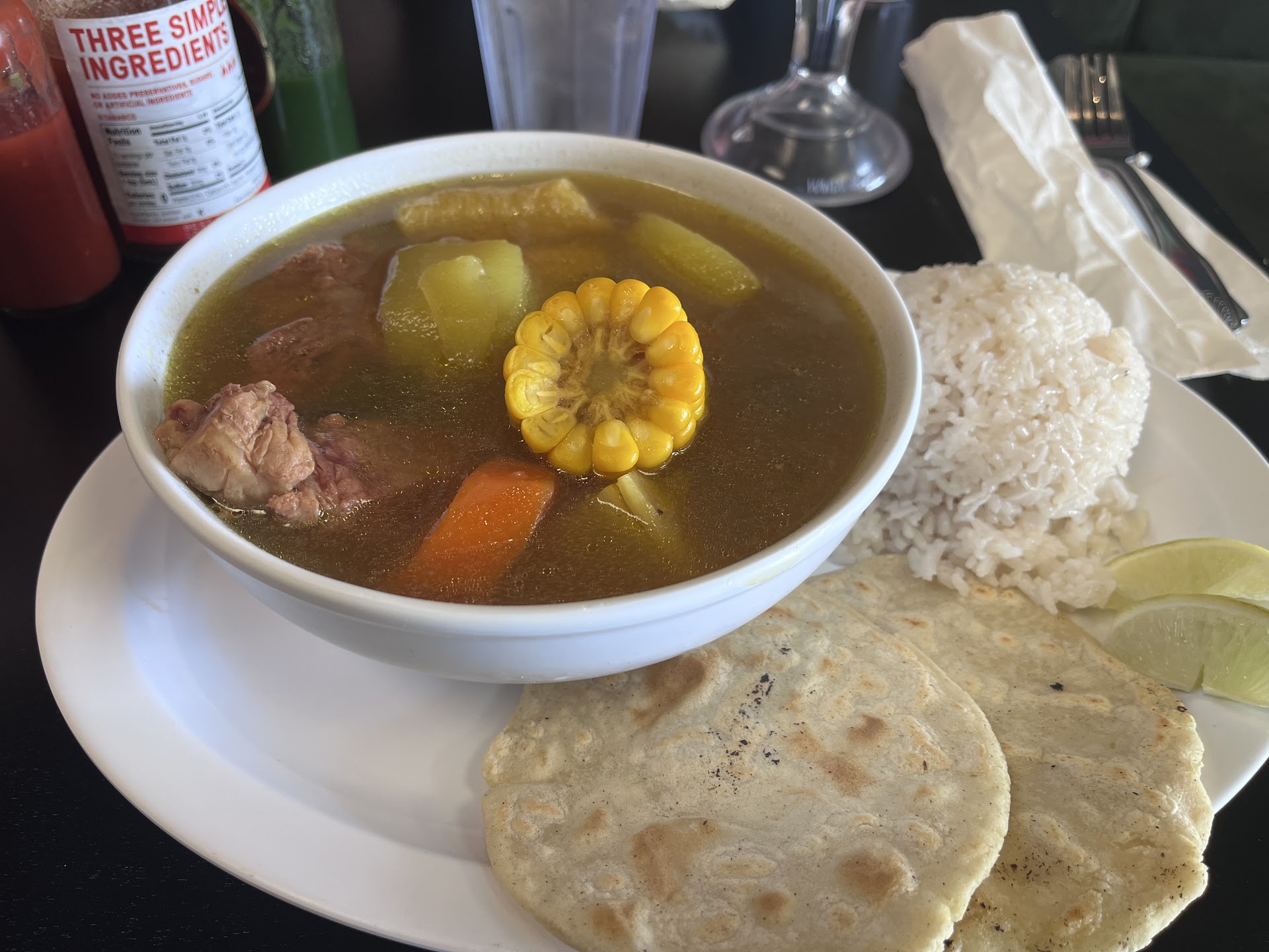 I ordered the âsopa de res,â a classic Honduran beef soup that holds the honor of being the countryâs national dish. Itâs said that if you can master this dish, everything else is smooth sailing, and El Portal Maya proved it! The broth was rich and deeply satisfying, brimming with tender beef, vegetables, handmade tortillas and white rice â and a touch of homey nostalgia. It set a high bar, for sureâŠ