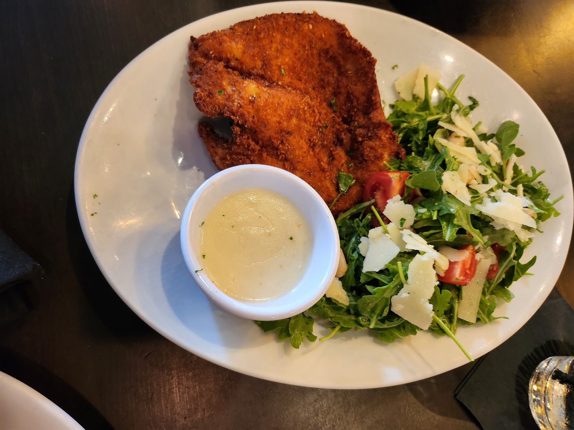 This time, I sent food back. I think the chef either dropped a box of salt on everything or cooked / braised / fried everything in sea water. I had the crab cakes with salted spinach. Honestly it was like Ron Jeremy sauce was slathered all over the spinach as it was so salty. Like my tears from this review so salty. Crab cakes just, well, sucked. Salty too. Had two bites and sent it back (didnāt ask for anything else) My wife had some fried chicken cutlet dish ⦠and guess what, it was salty too. Maybe Rocco Sifriedi was on playing duty that night, idk.