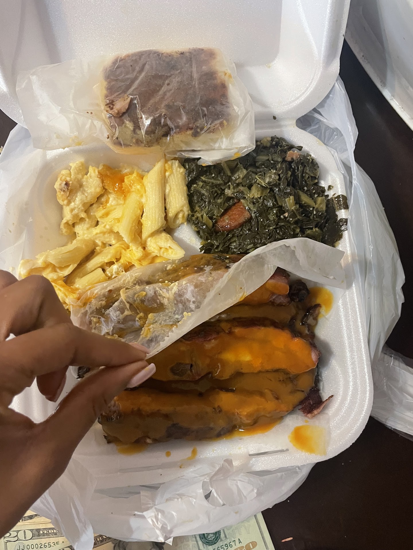 Review Found this place in a group and I haven’t went anywhere else for BBQ First time I got Ribs dinner, went back and got chicken dinner. Everything is great and fresh down to the desert, I can tell everything is made from scratch down to the pudding served in the banana pudding! This is my new go to spot, her food is made with so much care and love not just got a dollar. Highly recommend eating here. The ribs are alll meat very small bone, never in my life had a rib like that. Definitely worth it, I’ve been eating here every weekend since I found this place Food is packaged well nothing touching at all, let’s not forget the collard greens, I’ve been looking for home cooked good collards greens since I moved to broward and finally got them, every bite full of meat. The photos I’m going to post, speak for itself though… am imma say gone head and get it you won’t be disappointed, I’ve ate plenty of bbq and finally found the home cooked taste...