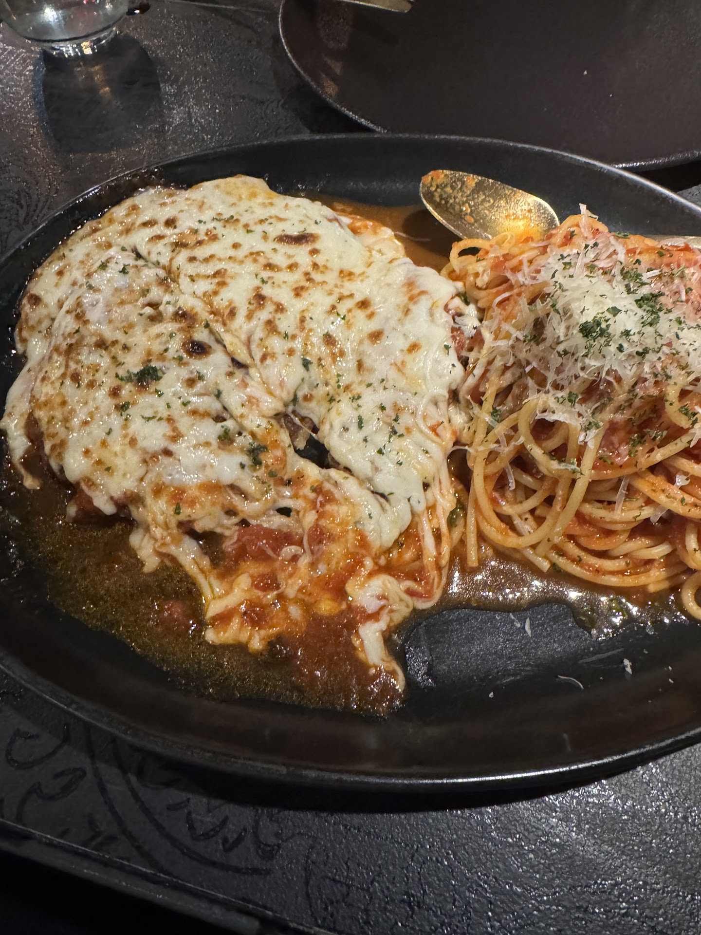 For the main course, we ordered chicken parmesan, which took about 30 minutes to arriveânot an issue if the food is good, but it was far from it. The chicken was overcooked to the point of being jerky, with soggy, burnt-tasting breading that seemed fried in old oil. Worse, the plate was filled with water, leaving the chicken to sit in a pool of liquid. We couldnât even eat it and had to send it back.