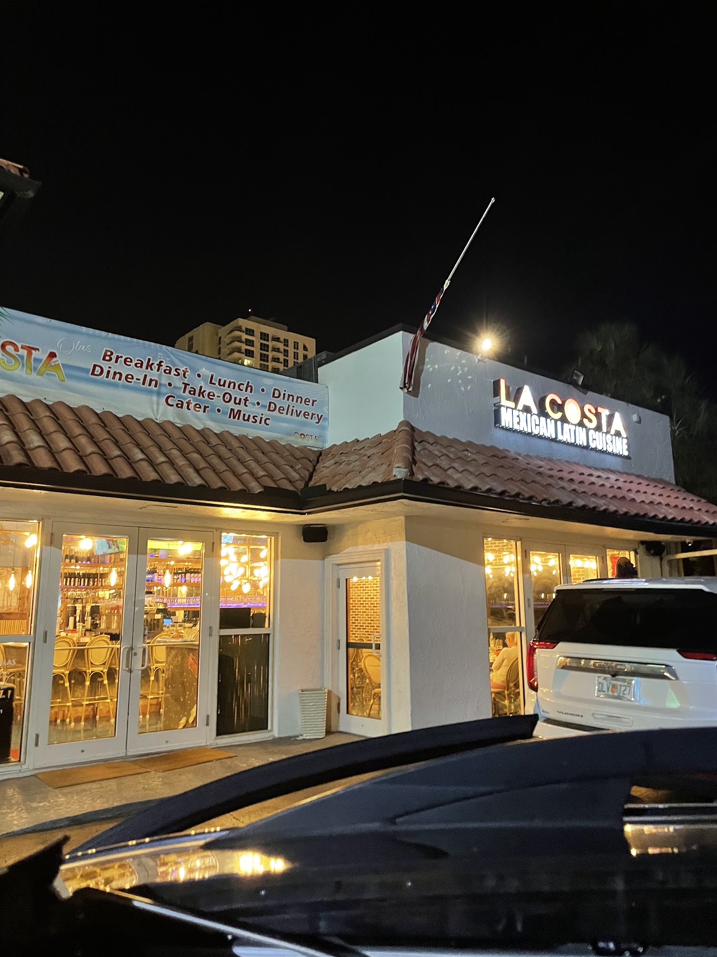 La Costa, Olas is located across from the new Las Olas parking garage and provided an excellent food and service experience. We arrived expecting Mexican food and were surprised to see authentic Honduran dishes on the menu. Our server, Alejandro, explained that there is a mix of Mexican, Cuban, and Honduran dishes on the menu and had excellent recommendations for us. Since we were originally in the mood for Mexican fare, we decided to order the Guacamole (Pico De Guac Guac) and Elotes (Corn on the cob) for starters. The Guac was delicious and the corn on the cob was spicy and scrumptious but the chips that came out with our Guac were a bit stale. Fortunately, that was the only low point of our meal. Our table ordered Carne Asada with French fries and coconut rice, Roatan's Coconut beef ribs, and an order of Carnitas tacos ( comes with 4 tacos unless it's Taco Tuesday, where the you can order each taco individually). Being no strangers to Central American cuisine , we could immediately tell that this is Honduran Coastal Atlantic cuisine which is heavily Caribbean influenced. Hence the coconut use in their dishes. Everything tasted amazing and pleasantly different than what I am use to. Being born in Miami, from a Nicaraguan background and eating all kinds of Central American cuisine all my life from Guatemala, El Salvador, Costa Rica and Honduras, this was a great foray Into the Caribbean coastal cuisine of Central America. Not common to find but oh so delicious. I highly recommend you give this place a shot and try their more traditional Honduran dishes when you go. Service was excellent , food was excellent, presentation was excellent and everything was very clean. I am so happy to have found somewhere close where I can order my Baleadas and Sopa de Mariscos whenever I have the craving. Our server, Alejandro, was extremely warm and welcoming and helped us decide on what is best to order. I will definitely be going...