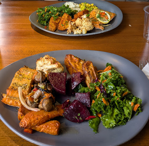 Everything else aside, a place like this lives or dies on the food. That's a shame for this visit because neither of us were overly impressed with it. Potatoes cold, cauliflower so tough you can't get a knife through it, and the salmon was so overcooked and dry it was more like canned tuna then fresh baked salmon. It was edible, and tasted okay, but was disappointing. Carrots and beets were okay, but the latter were just overdone a bit. The kale was drenched in some light dressing I didn't care for at all. Mushrooms were chewy and boring.