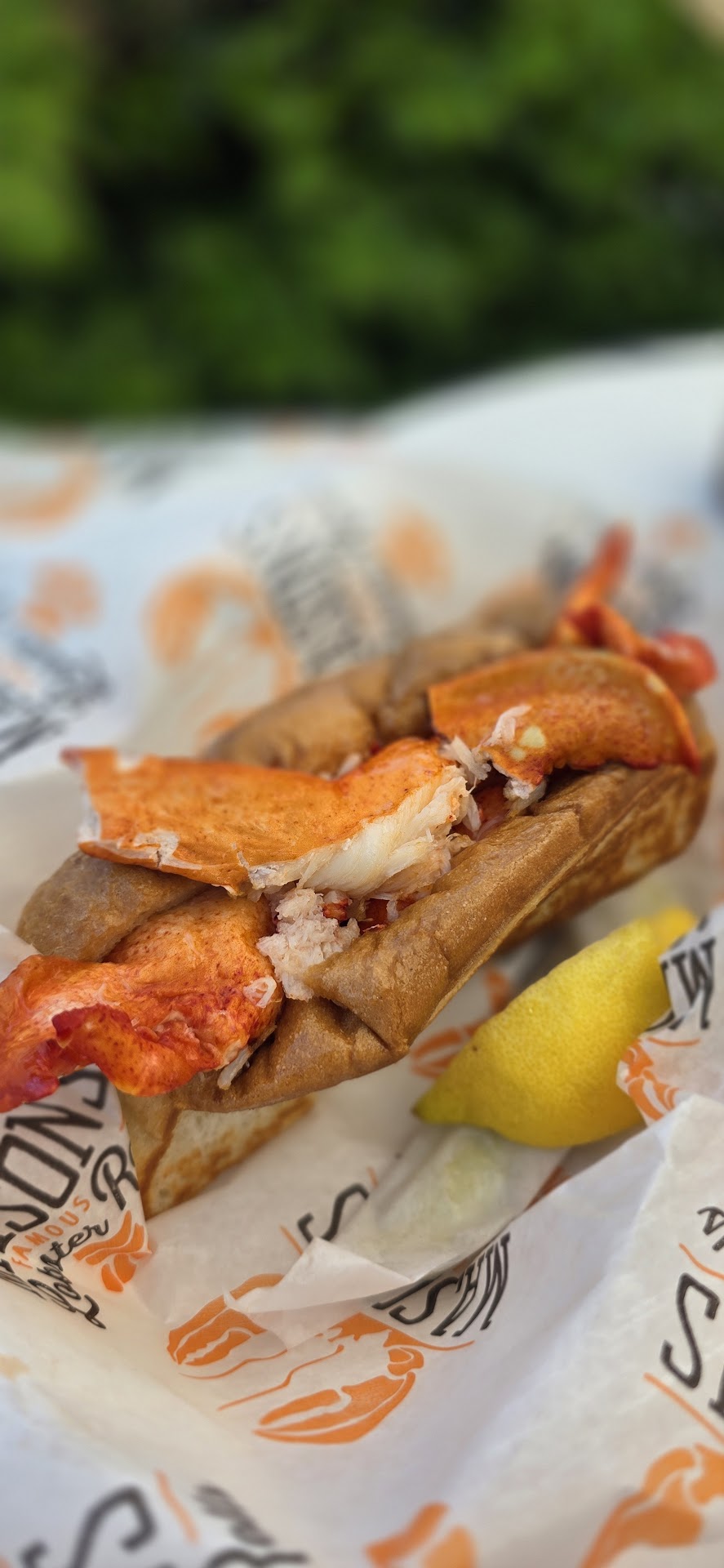The roll itself? Absolute perfection. Buttered and toasted to a golden crisp, the bun cradles a generous portion of fresh, sweet lobster meat—lightly dressed in butter to let the seafood shine (they also serve a mayo version we didn’t try). Every bite tastes like summer. No heavy mayo, no fuss—just clean, bright, briny goodness.