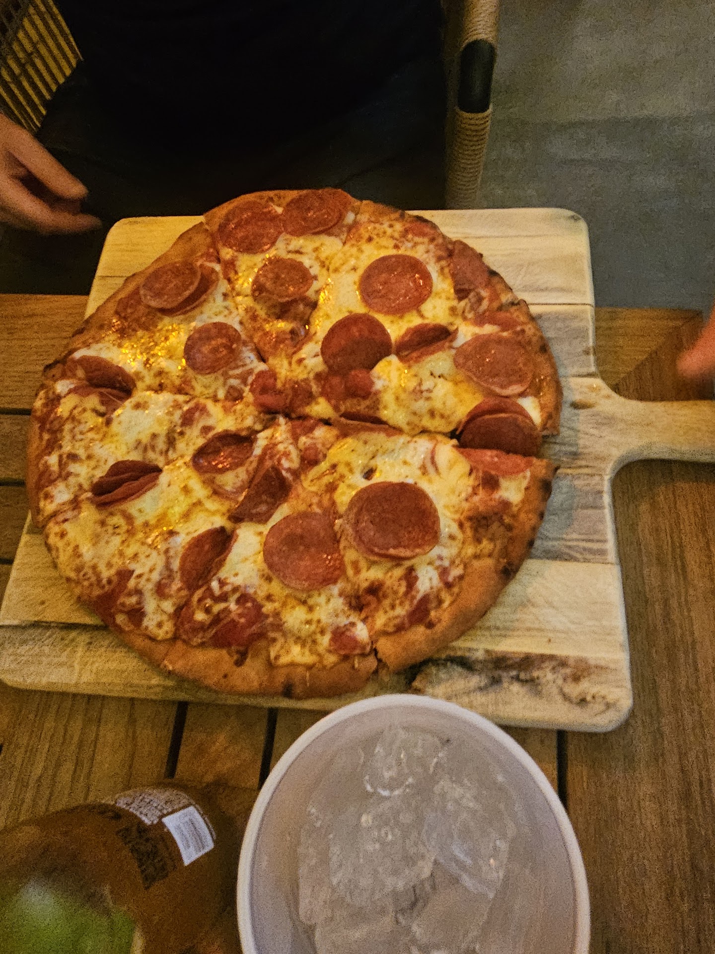 First, let me start off by saying everything started off ok. My wife and I stopped by for a quick bite to eat as the patio was almost empty and we figured we could eat and continue on with our evening. We were seated and our order was taken in a somewhat timely manner. Food and drinks were delivered and this is where thing started to take a sharp nosedive. My wife ordered chicken fingers and fries, I opted for a turkey club. Again, thought process was on a quick bite to eat. My food wasn’t bad, my wife’s however was an entirely different story. Her bottled beer was warm and the chicken fingers were soggy. While we were eating, I can only guess that “friends” of the manager or owner showed up and two tables were pushed together directly across from our table. Ok, no big deal here, I have seen big groups numerous times and they have never disrupted my dinner or the service that I received, however, that was not to be the case this time. We sat and watched as the owner/manager, our waitress, as well as another waitress or customer host, brought bottle after bottle of wine to the groups table and catered to their every whim. The group had a dog with them and were given a “take out box” which they then used as a water bowl for the dog in the restaurant, as well as used water from the guests water pitcher to fill the make-shift bowl. Now if this would have been a proper service animal, that would be one thing, but as the dog would wander around greeting people, ourselves included, this definitely was not a properly trained service animal. The waitress, finally noticing that we were done eating, came and asked if we were done (which we had been at this point for a good 15 minutes) and proceeded to take our plates. Now at this point, one would expect the waitress to come back with your check, but, nope. The owner/manager, the waitress, and the customer host continued to cater to the group sitting across from us. Numerous times the owner/manager made eye contact with me sitting there at the table, no food, no drinks, but never came to question why we were sitting at a table in the establishment without food or drinks. Exactly 34 minutes after our waitress had taken our plates, I was finally able to get her attention to get my check. When the waitress came back, she said “I’m sorry, it’s a bit hectic tonight”. Had the patio and bar been full, I could have easily bought into the theory of hectic, but considering the patio was only half full, it was far from hectic, they were just too busy catering to the family/friends group than they were with efficiently running their business. In my 51+ years of life, this is the absolute worst service I have ever experienced and this is the first time I have every left a bad review for...