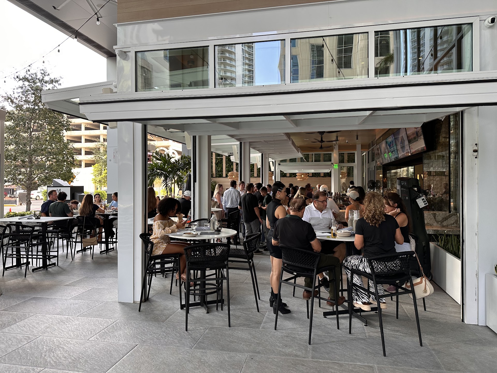 The establishment itself is remarkable, modern and so downtownish. It spans two stories of a corner edifice, all glass, radiating a lively, and slightly raucous vibe. It's a haven for the young professionals of downtown and the Flagler Village crowd ā an ambiance reminiscent of cocktail hour in downtown Manhattan.
