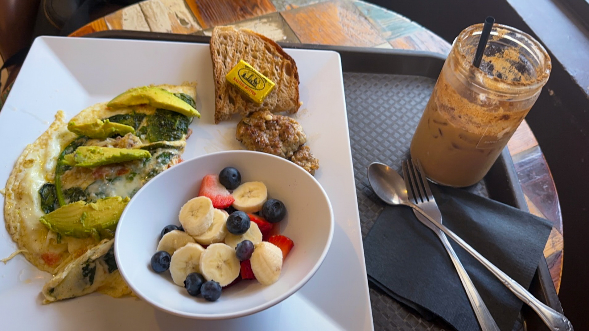 The nanouccino was delicious, I literally scraped the glass with my spoon. The sandwich was perfect, the flavors were wonderful and I didn’t leave a speck of those delicious potatoes on the plate. You can tell that the owners and staff here are running this place with love and care and I felt that from the second I walked in to the second I left. Sat and ate my breakfast at a table inside and the ambience was joyful and light, inside of the restaurant is a great space.