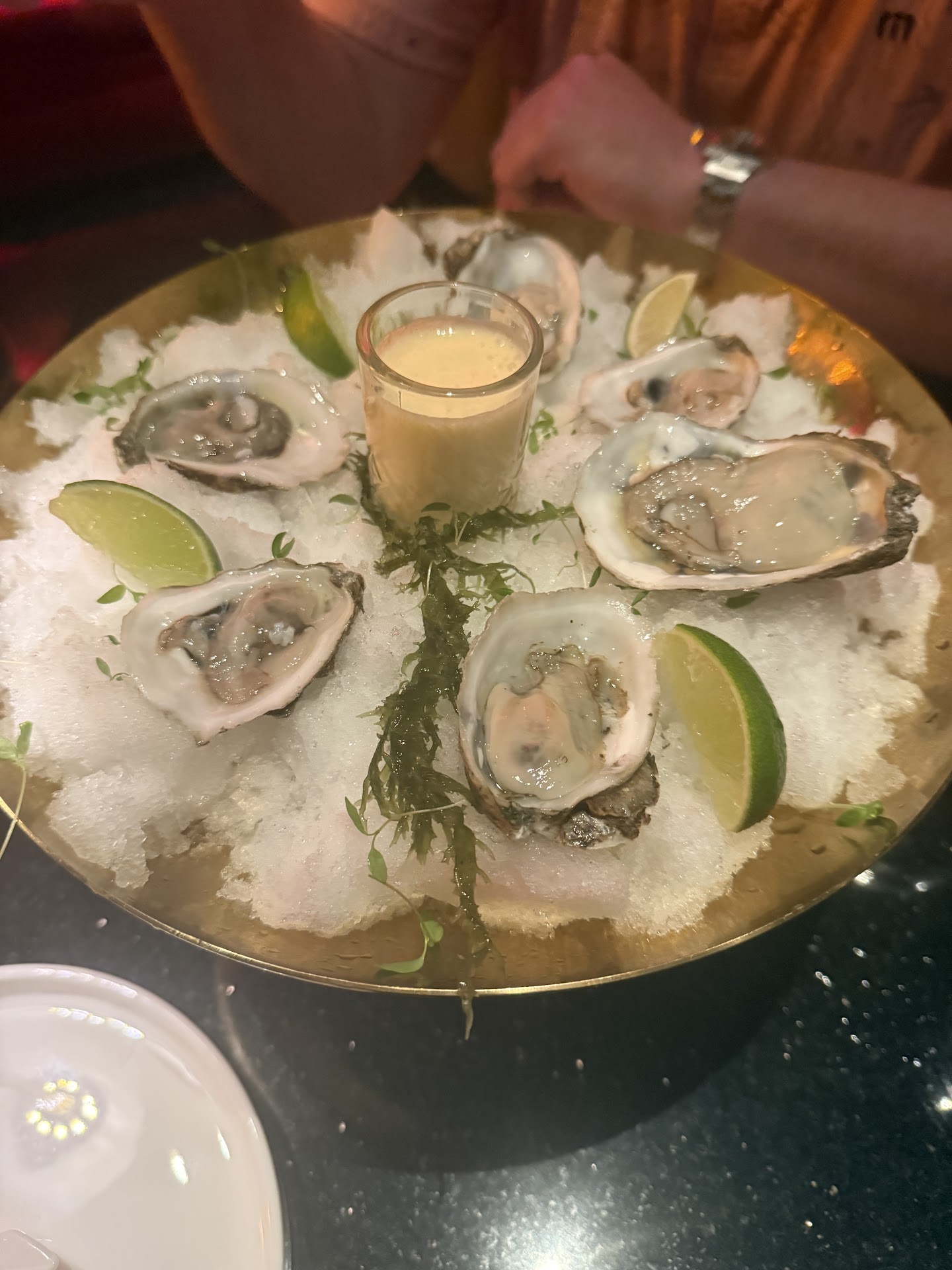 Regarding the food: the appetizers took a while to come out. I ordered the grilled octopus - I will say, that was good. My partner ordered oysters, which were mid at best. She also loves sushi and was looking forward to trying it here, but was disappointed. They provide overpriced basics and the rolls are just “fancy” names: aka California/Dragon rolls with toppings.