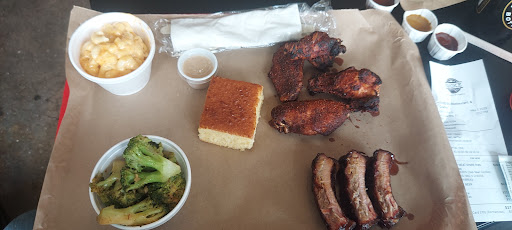 After consulting the menu and wanting to order everything I picked the 4 baby baby ribs with root beer baked beans and their homemade BBQ chips. After tasting the ribs I wish I ordered the larger portion. The meat was fall off the bone candied pork deliciousness. They give you extra sauce to pour on. The baked beans had a nice tang to them and those chips were to die for! I am not one to pick up a bag of Lay's BBQ chips. They taste too sweet and chemical to me. The spice on these chips was everything. They were some of the best homemade chips I ever eaten. My meal also came with a light cornbread that was more like a cake. When I smeared the cinnamon butter on top that was like an icing, it was dessert. I also got one of their cane sugar cream sodas. They also have beer from Funky Buddha. Compared to other BBQ places, their prices are very reasonable. When I saw someone else's macaroni and cheese I kicked my self for not ordering it. I am very picky and it looked like it measured up to my exacting standards. As suggested by their sign I did indeed pig out. I can't wait to explore the rest of their menu. They have a two meat combo with two sides for $15.99. I also want to try their famous pastrami and brisket. Just thinking about it makes me want to drive right back there. With almost 1,000 stellar Google reviews I am late to the party but let me add my praise to the chorus. This is the BBQ you...