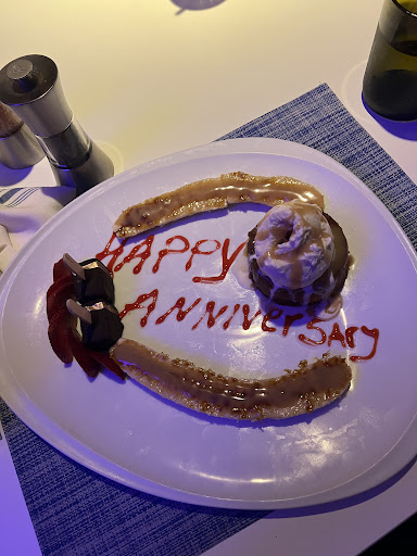 For dessert, we ordered the banana bread pudding, and they went above and beyond by writing “Happy Anniversary” on the plate and comping it—such a sweet gesture that really made the night special.