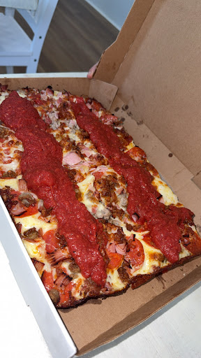 We ordered the Detroit style pizza with veggies and beef, as well as the Philly cheese steak and fries. The pizza was absolutely delicious, all the ingredients tasted fresh and extremely flavorful. You can tell they use quality ingredients. That crust and the cheese pull were show stoppers! We ate some slices in the restaurant and took the rest to go. We were able to reheat the slices in the oven at 350 for about 10 min, and it tasted just as great as when we ate it in the restaurant. The thick crust really helps it hold up well. We loved that it lasted us for many meals!