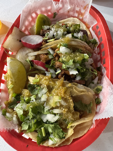 Waited for my and my friend's orders for one hour and 15 minutes reason being is that the taco maker worked with one order at the time and had no concept of what multatesting is all about. Tacos al pastor had no flavor what soever (same comment for steak, chicken and tripitas tacos) The tacos size are 3.5 inches, way too small, in other words two bites and bye, bye $2.50. The help mixed people orders and had no customer service principles. Obiesly the owner was there to supervise the cash flow and he showed no interest on helping his help or improving performance, quality or service BUT, he showed preference on orders of people he knew, those folks only waited 10 to 15 minutes while others did not. Finally, I am giving 5 stars to the red...