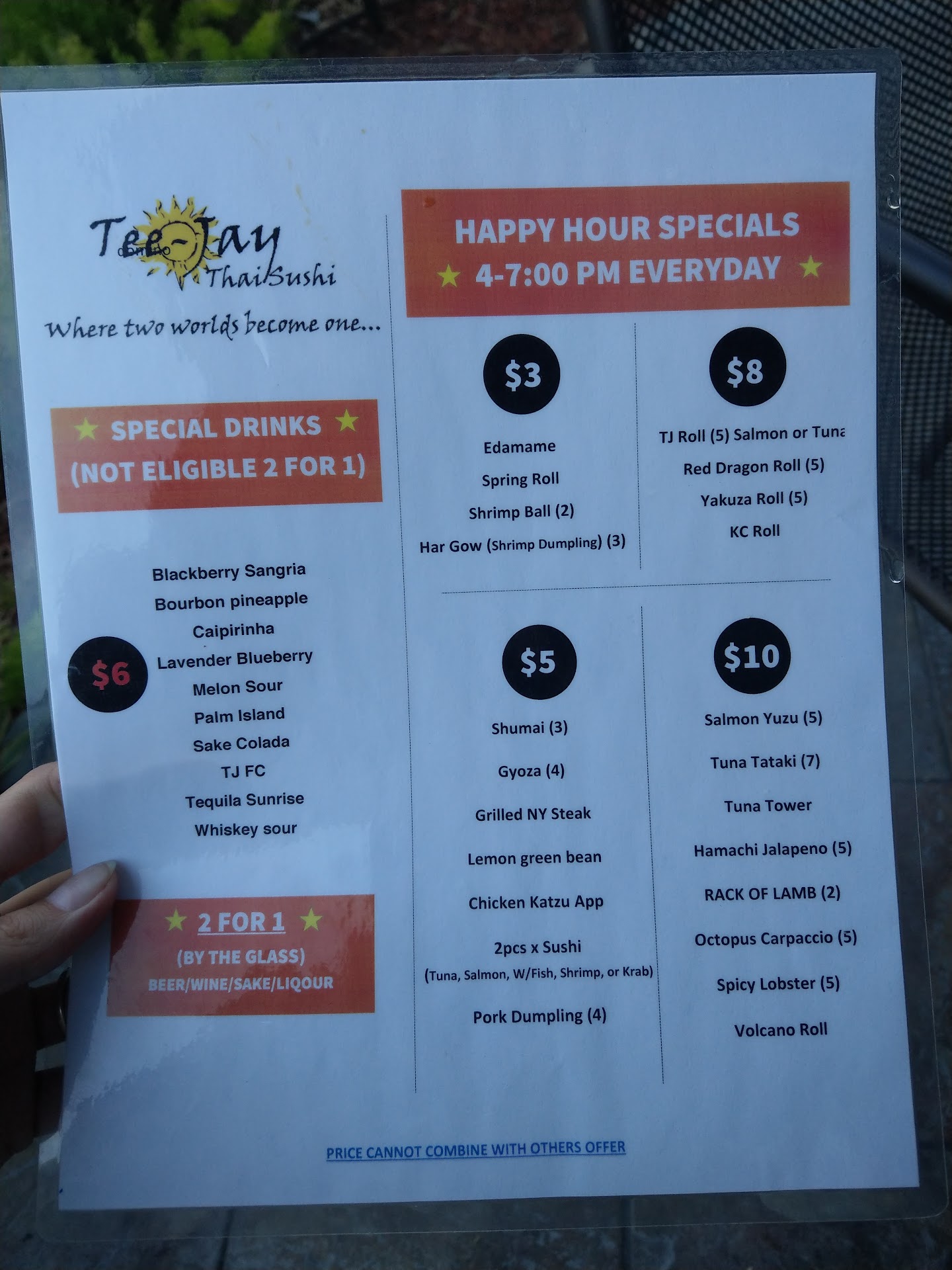 Extremely disappointed. I was very excited to eat here with my wife after reading all the great comments and seeing a reasonably priced sushi menu. We ordered a tempura appetizer and it was pretty good the shrimp was nice and crispy we also ordered 2 shrimp tempura sushi rolls but to my surprise the shrimp tempura used in the sushi is pre made god only knows how long in advance and stuck in a freezer. The shrimp in the sushi roll was extremely cold and mushy unlike the same advertised shrimp used in the tempura appetizer. We also ordered chicken fried rice with no vegetables but the rice was brought to our table with lots of onions, when I made a comment about the onions the waiter said you never ordered it without onions you only stated no vegetables... smh... the waiter takes the rice off of the table and assures us he will get it taken care of at this point Iām upset from the service and the mushy shrimp used in our sushi rolls so I began to complaint about our sushi as well. The waiter refuses to offer a solution and mentions that we had already eaten 1 sushi roll so I said we only ate one roll and we will gladly pay for it but we would like the uneaten mushy sushi roll removed from the bill so he takes the sushi away and brings back our rice and states that the chef in the kitchen had removed the onions and did not prepare a new order..... gross, unsanitary, and unprofessional. I still tipped 18% cost me over $100 and I still had to pay for the UNEATEN and molested fried rice. Thanks teejays for your...