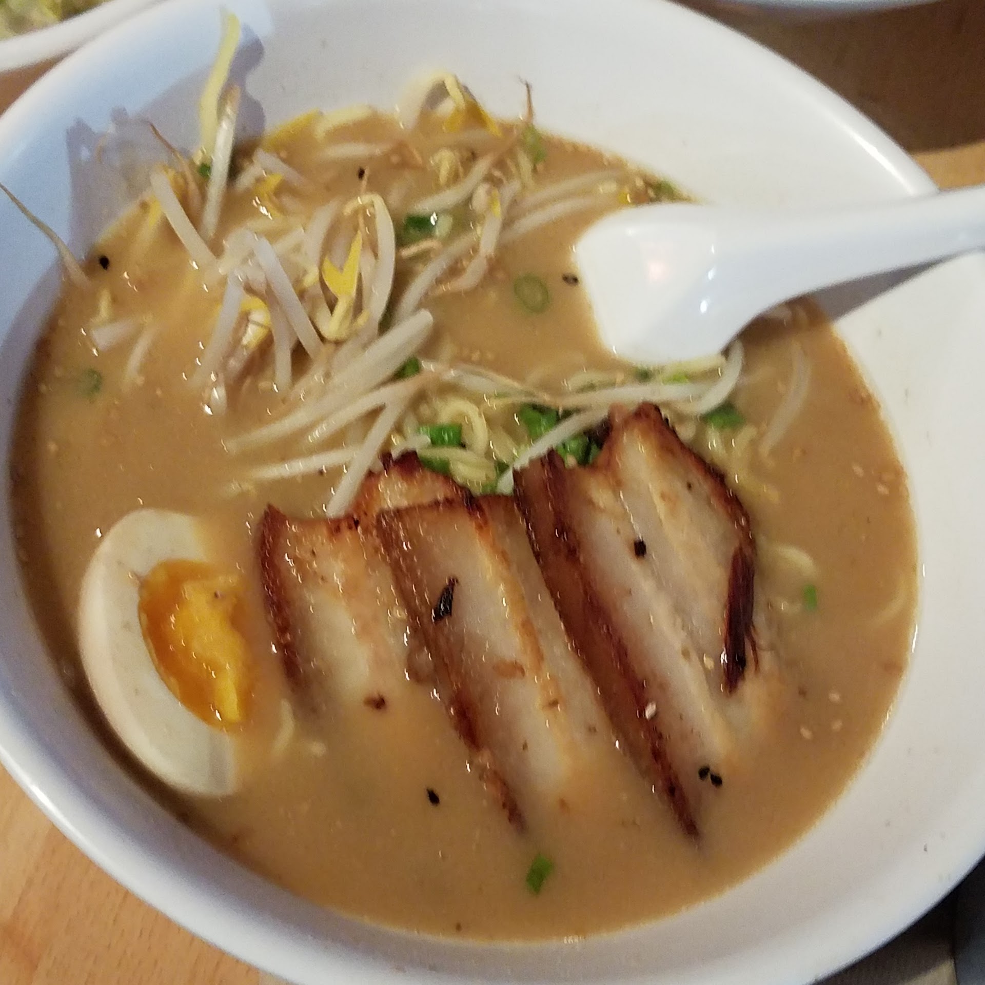 Spicy miso ramen is the biggest home run on the menu on its best days, the Buddha bowl and chicken katsu are always a healthy leaning option that will still leave you full… the apps are also awesome. The edamame falafel bites are an “every single time” item for us. The veggie dumplings are amazing (you will be unsticking them if you get takeout - dive in with a fork)… if the SPAM roll is even a blip on your radar, do it!