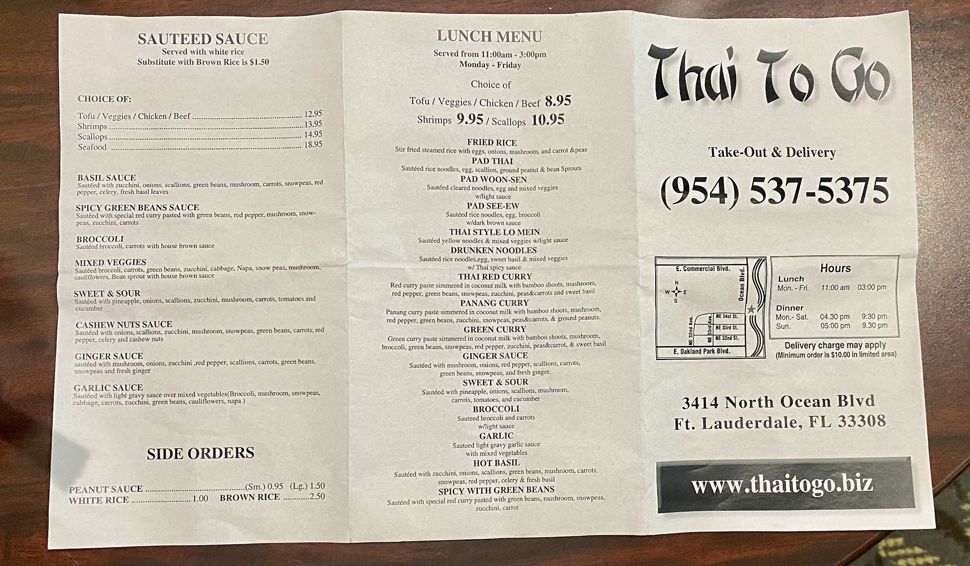 I work in the area and we regularly order from this place, not only because of the quality of their food, but because they are highly consistent. I love the curry dishes (Panang is my fave) and the flavors and spices are always on point. The prices are affordable, but the flavors taste like any fancy sit down Thai place. Their timing as far as delivery also makes them a good spot to order from if you’re hungry, they never disappoint us or leave us missing our lunch break, which other places in the area have. I’m also a vegetarian and I can testify to the fact that they will make any dish vegetarian for you with veggies or tofu- and they execute the tofu well, (it doesn’t feel like an afterthought like it does at some places.) Thanks Thai to go for always taking good care of us...
