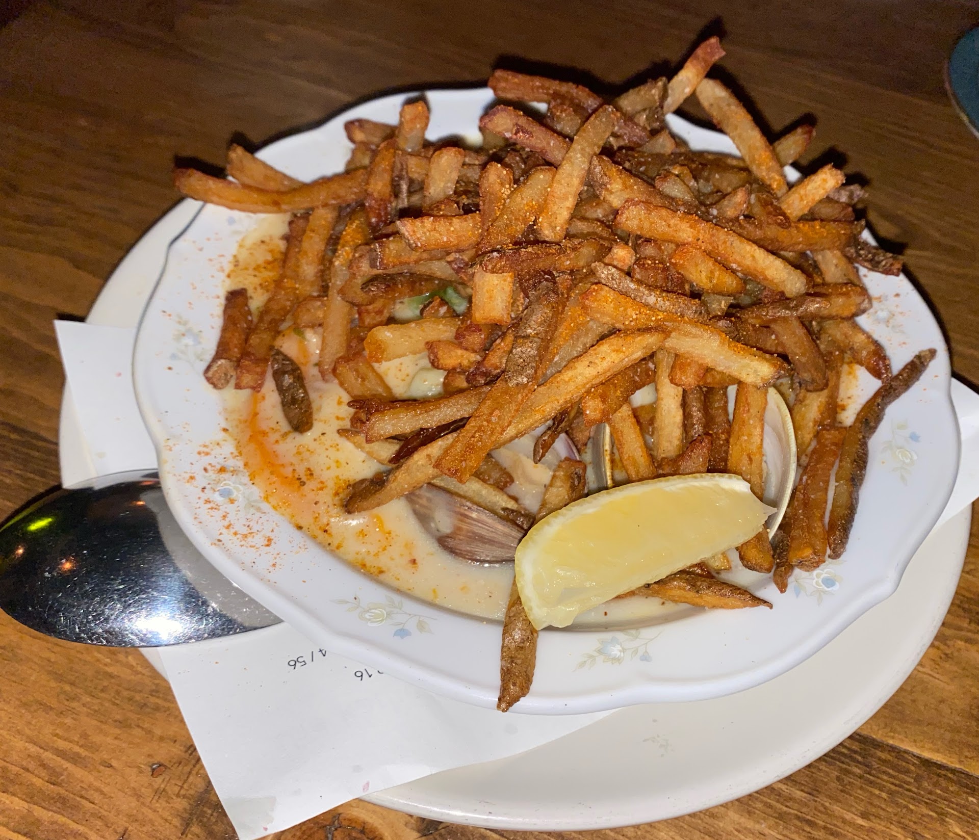The next was the clam 🦪 chowder 🍲 French fries 🍟. What a combo! It’s a must. Fresh steamed clams in the shell 🐚 with a creamy thick chowder was topped with Crispy fries 🍟. A masterpiece!