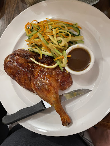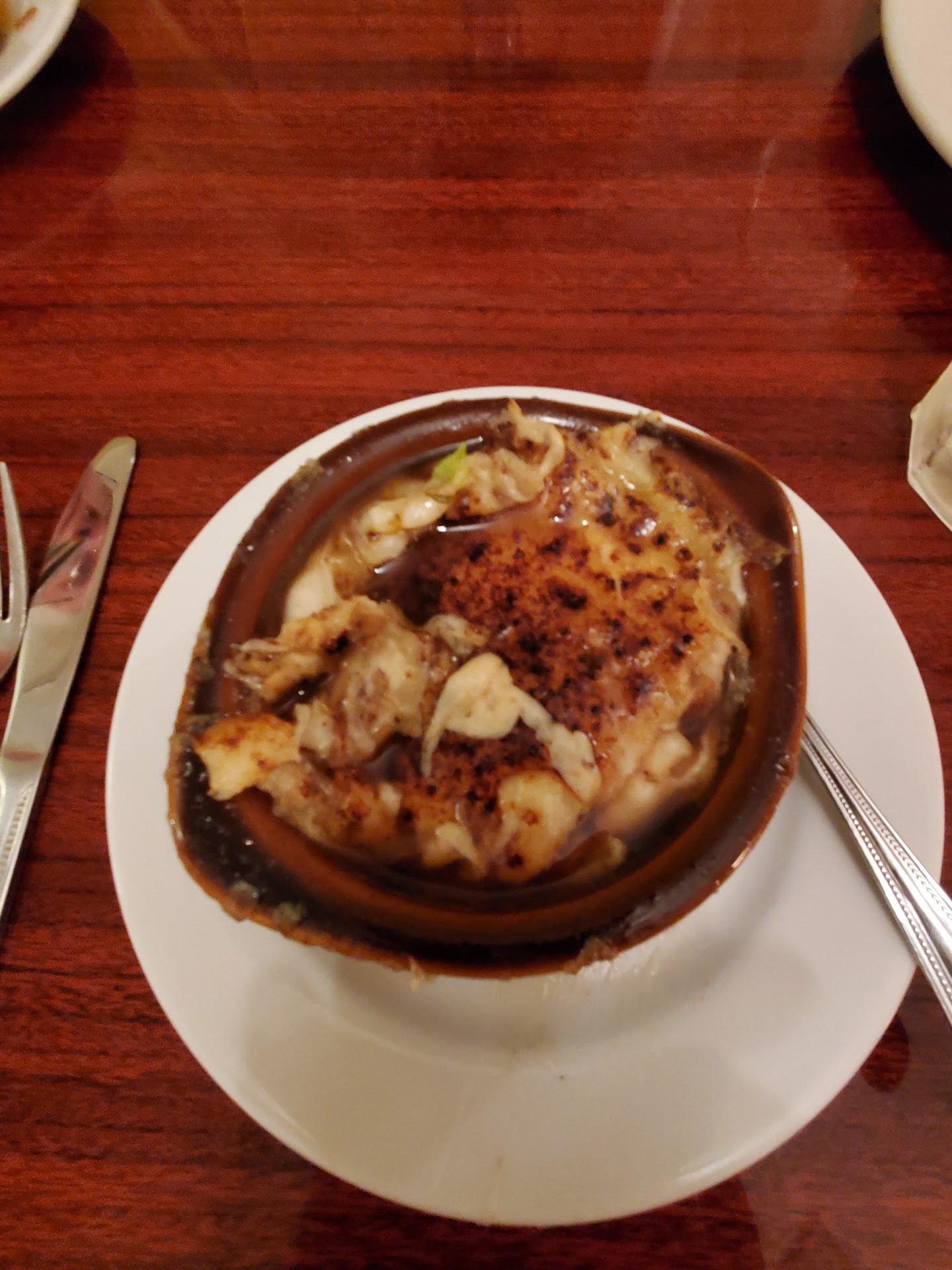 12/6/19- 12/6/19- We went for lunch four of us. Just a little wait. Place was packed. I order off the dinner menu, I started with their lobster bisque which was on the board outside as a special. I Had to have their chicken pot pie $20.00 Hugh. It was filled with big chunks of chicken , potatoes and peas and carrots. Nice and creamy. So big I took home . Feed two of us for lunch How they packaged it , was so nice looked just like when they served it. Hubby had their meatloaf sandwich which was on a nice crunchy baguette. Both the dishes cane with two sides. She let me have my soup as a side. Then I had their famous Brussels sprouts which is sauté in butter and pistachio nuts. Oh my so very good. . One friend had the duck off $25.00 , dinner menu too and the other had the chopped chicken salad. Old school so no computer receipt . They use mason jars for your ice tea