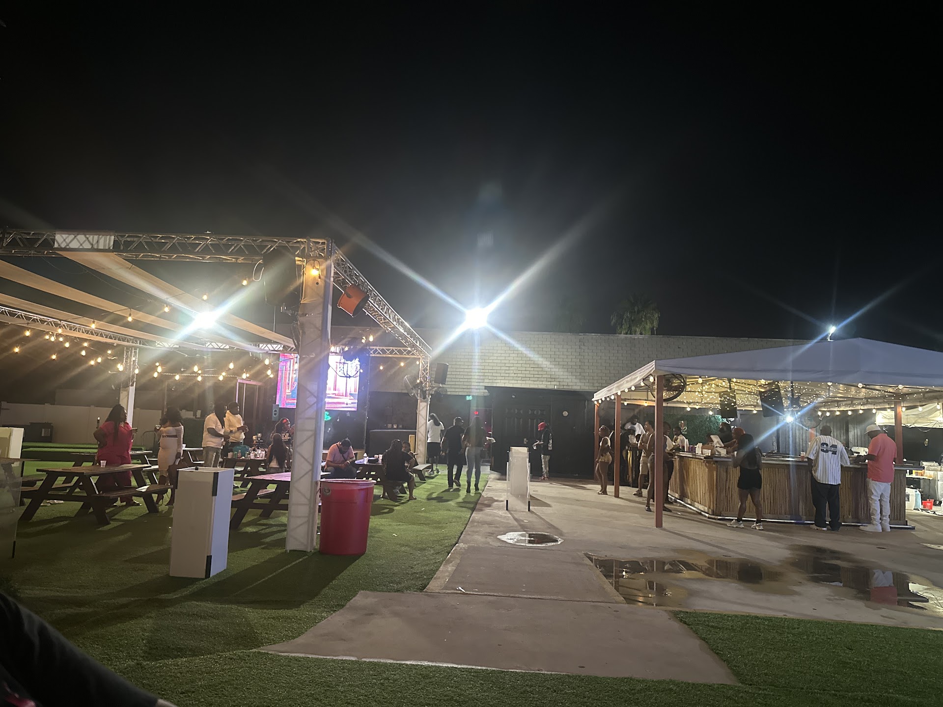Read moreVisited on a Friday for R&B night for my wife birthday and reserved a table (picnic table) that was a bit over priced for that night $400 and came with 1 bottle. I know not to do that next time! Both DJs were great, our bottle girl was the best, I have to request her next time, I regret I forgot her name but she had on a hot pink two piece 👙 on Fri April 4th. It wasn't a big crowd but it was ALL good vibes. Only downfall... they didn't have any of my favorite drinks, didn't have the wings I like, and the drink I did request was not made correctly. But, We will...