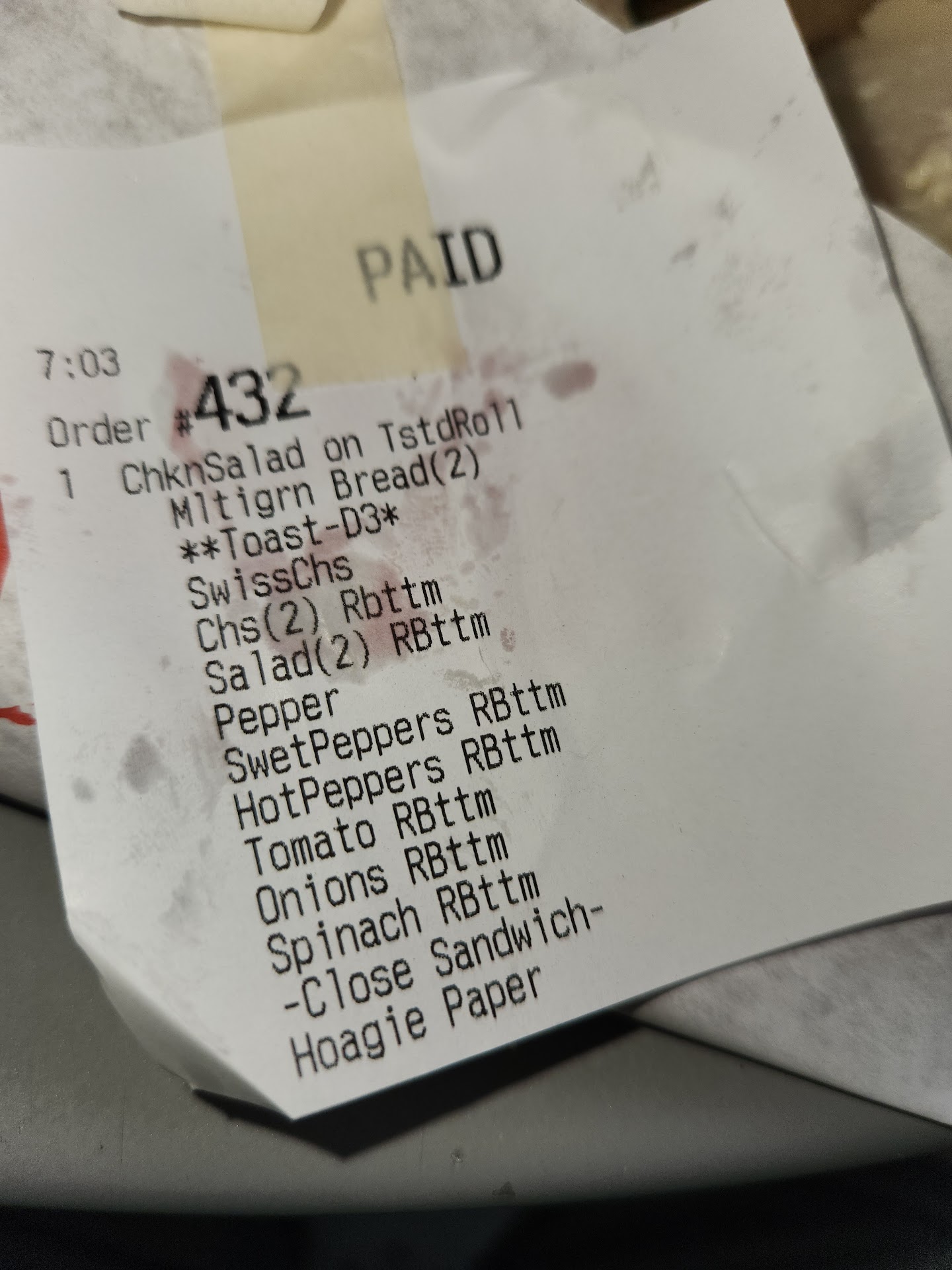 03/03/2023 Just when I think this location couldn't get any worse. Today's lunch was bread with two tablespoons of chicken salad, wilted spinach, a piece of onion and a slice of tomato. Totally ignored the request for sweet and hot peppers which they had. Obviously can't make a sandwich. Can they read? It felt and looked like a thin pancake between 2 pieces of bread. This location is so reliable on DISAPPOINTMENT. Wawa...