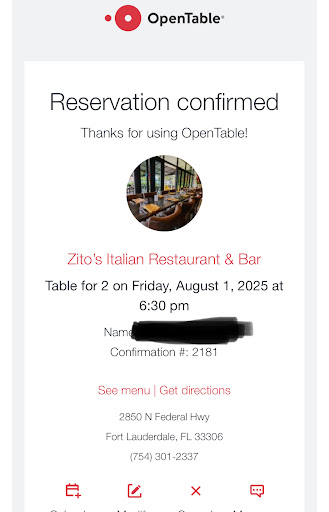 At that point, I had enough and walked out. I attached a screenshot of my indoor reservation confirmation and even made a second test reservation for the next day to prove how OpenTable clearly distinguishes between indoor and outdoor seating.