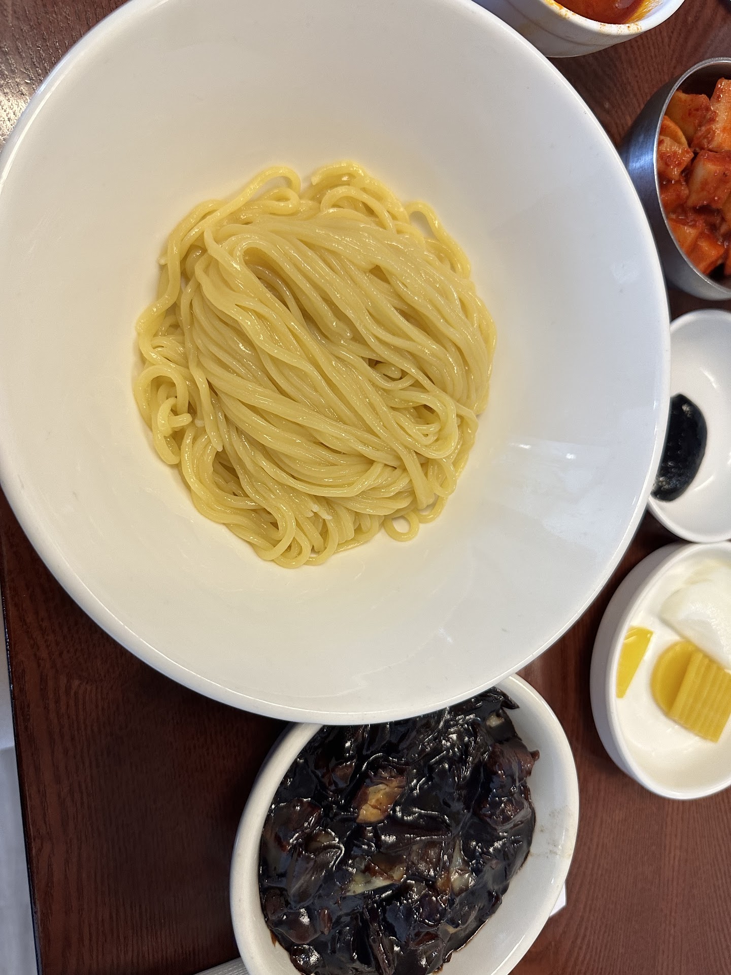 I've been craving jja jang myun (black bean noodles) for awhile. When I was around the area in my powdery white dress, I accepted the challenge to eat jja jang myun.