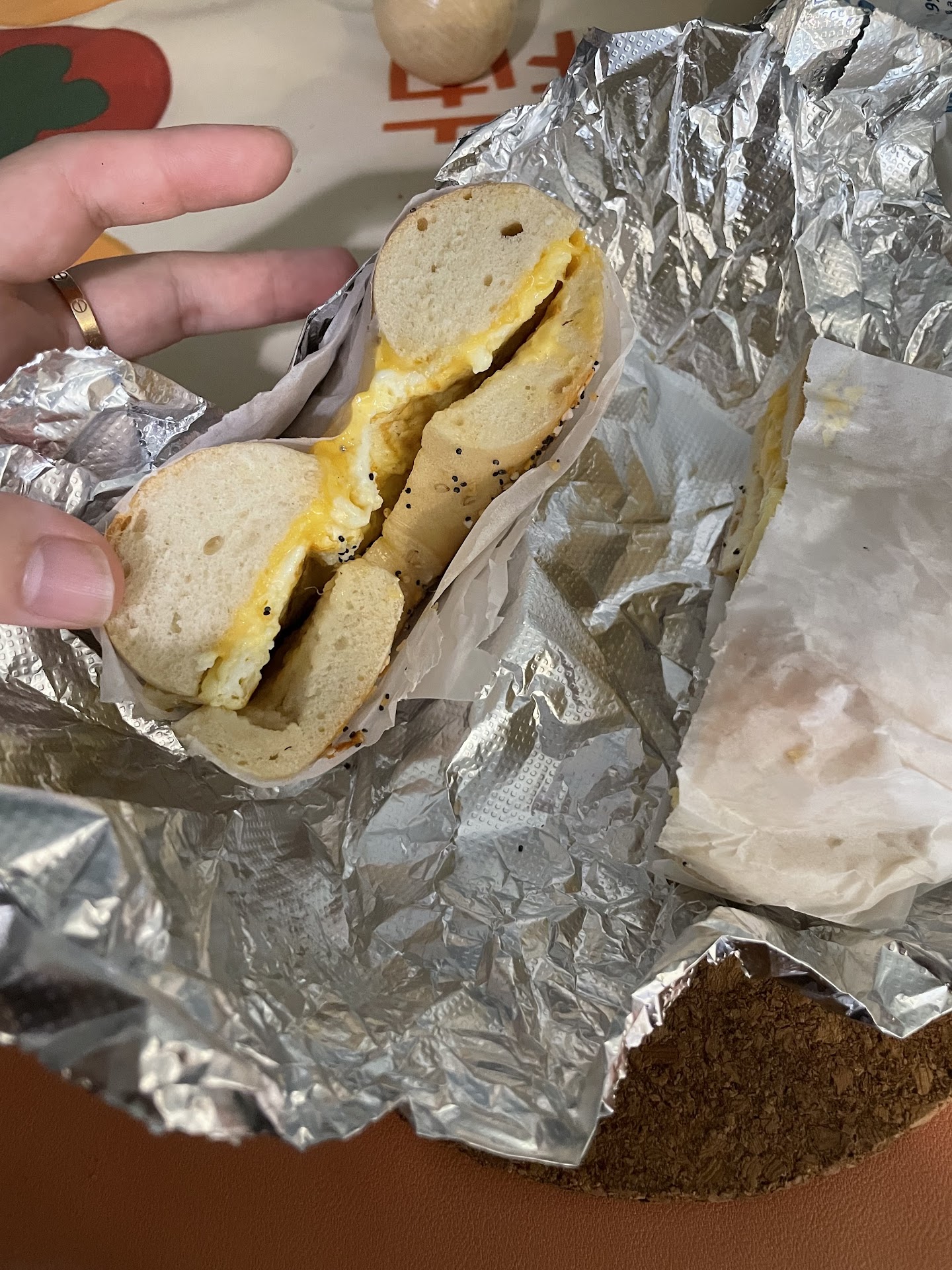 Read moreWe were craving bagels so we came here randomly for a late breakfast. Upon walking in the older man working wasn't very welcoming. Without even a hello just asked what we wanted. We ordered two sausage, egg and cheeses; one on an onion bagel and the other on a plain. My boyfriend was picking out a drink and the man just says in a loud tone "anything else". We got startled but said no and paid for everything (around $15 for two bagels and an orange juice). After the encounter we lost hope the bagels would be good, but when we tried it in the car, fortunately they were BOMB. Wrapped and cut in half nicely, bagel wasn't doughy and the egg/sausage tasted...