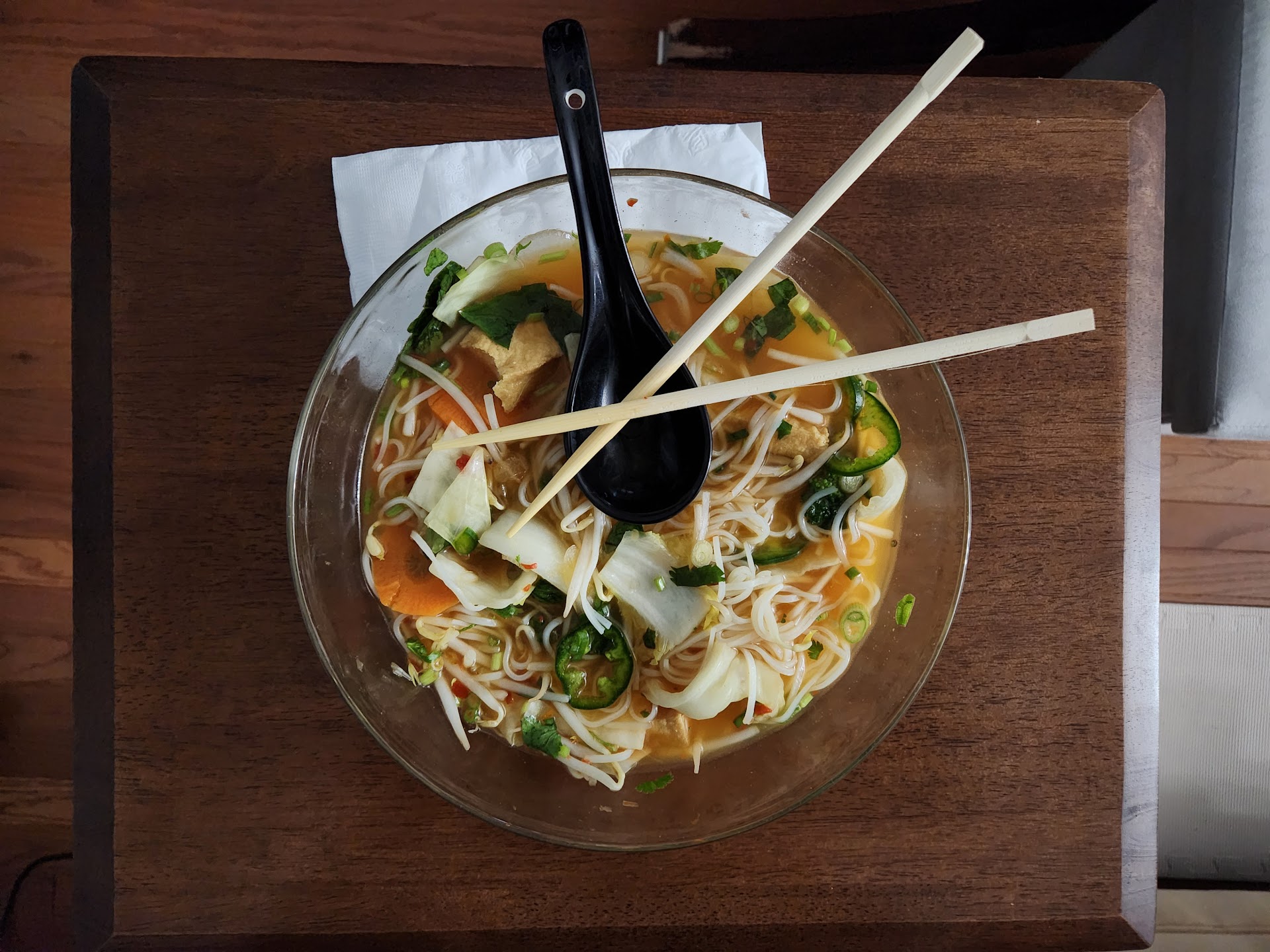 Read morePho Che will be my top choice when the pho craving gets me the next time. I have quite a restrictive diet now and can't eat certain veggies. For some reason, I am finding many places in Jersey that are not willing to accommodate, making my dine-out choices very limited. The extremely pleasant woman who answered my call told me, "No problem." I ordered a Lg veggie & tofu pho and an order of veggie gyoza. The gyoza were crispy and tasted very good. I didn't even use sauce on most of them. In comparison to the place I had been ordering from, I received a huge bowl of veggies a generous amount of noodles and a satisfying amount of tofu. The other place barely sends any of the above and the amount being sent has steadily decreased over the last few months. After assembling my beautiful bowl of soup I was extremely impressed and after my first spoon of broth was even more pleased. At the end of the meal I sat back and was more disappointed that I hadn't found Pho Che sooner. Not only was my mouth smiling, my stomach was very happy too. If you aren't sure about ordering here I definitely recommend giving them a go. I look forward to trying some other items on the menu in the...