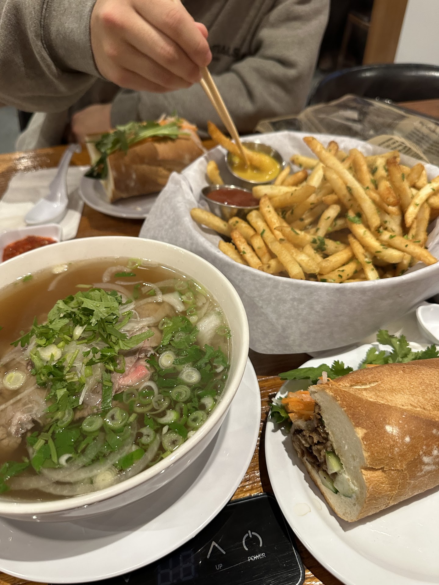 My boyfriend and I were so impressed by Pho Che’s yummy food, huge portion sizes, AND affordable prices. We ordered the small pho with rare steak and brisket, bbq pork bahn mi, and french fries provenzal. The food was delicious but we still had a lot to take home after. The fries were so crispy and garlicky. They were a little too oily for me and I wish it came with a spicy mayo instead of ketchup and mustard. Definitely have more than 2 people eating the fries if you order, because they give a lot! The bahn mi was equally good and we were surprised by how good the bread was. The pho was huge even for a small size, and the broth and noodles were light so it doesn’t leave you feeling too full after a few sips. I honestly think if you’re just coming with one other person, you can order one dish and share between the two of you (not for the bahn mi though…I’m not sharing that).