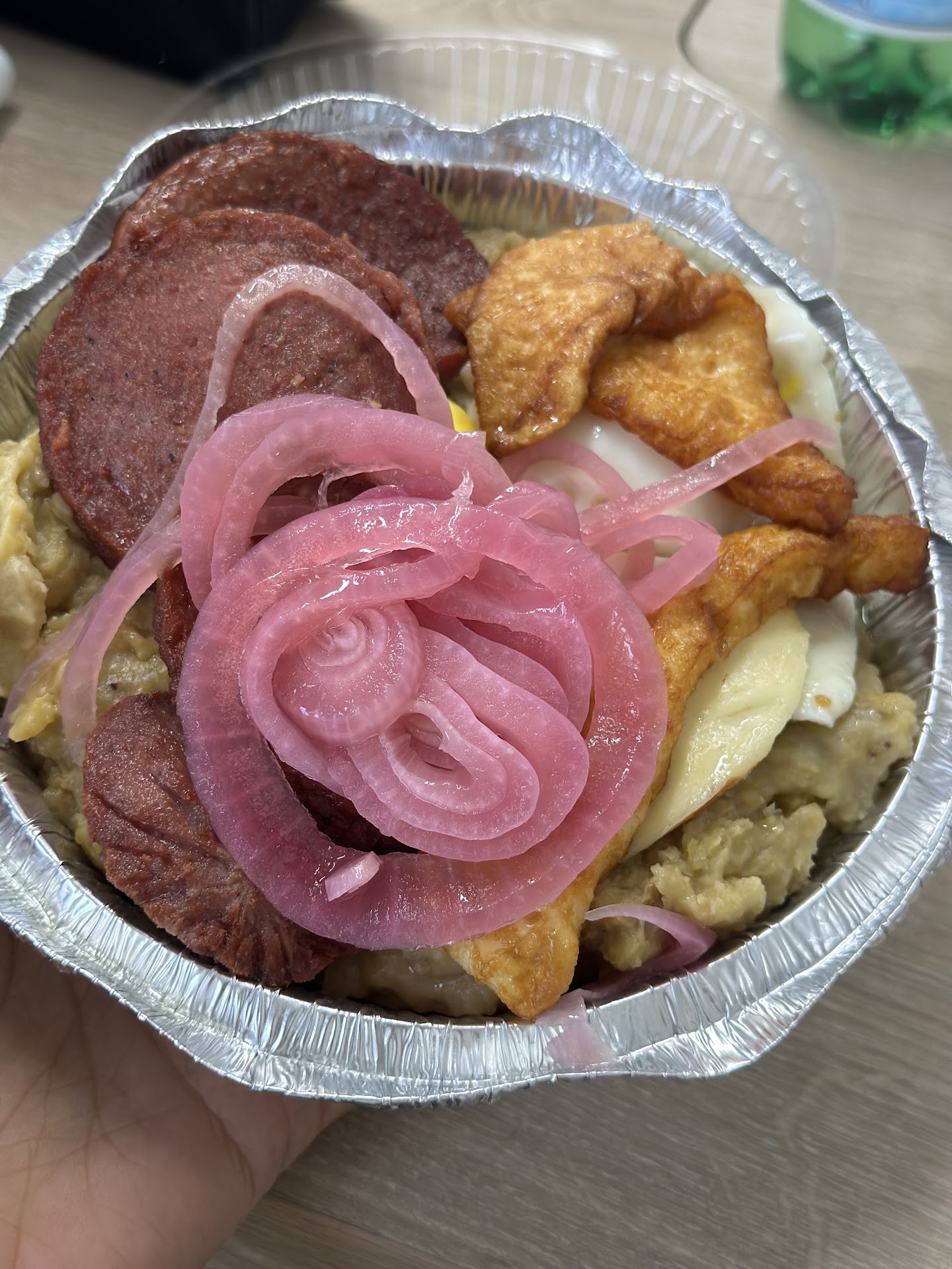 Read moreOrdered takeout from Uber eats, We got lost tres golpes ( three hits ) eggs, fried cheese, salami & the mangu of course, I got mofongo de Chicharron & I added queso frito ( fried cheese ). We got two empanadas of beer and two of cheese.. the cheese as you can see from the pictures was not a lot and whatever cheese is used melts completely onto the inside walls of the empanada. The sizes are very small to be paying 3$ for each little empanada to be honest.. I don’t even pay 3$ in New York City so I was a bit confused when I saw how minuscule they were.:.:. Then to top it off not even all that taste wise. Mofongo was dry, they added two little sauces but to be honest that only help for half of it after that I couldn’t eat it of how dry it was & there was no more sauces for the mofongo or mangu... juices were great I ordered a chinola juice ( passion fruits natural juice ) & a Morrir Soñando ( die dreaming // orange cream drink ) .. but got two chinola juices instead.... 🤔🙃😒🤨 so I was a tad sad about that but luckily I love both juices...