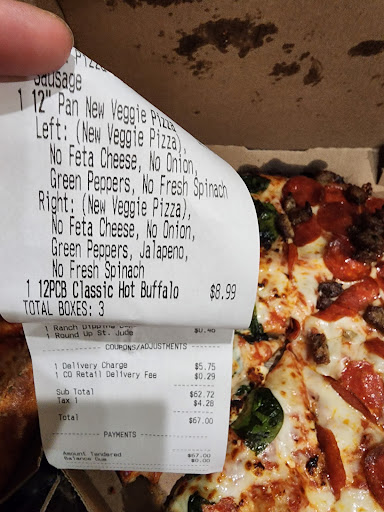 We have been a loyal customer of this location for a long time. We have had them deliver over 100 pizza’s to our home outside of town. Never an issue until tonight. Order using my phone instead of my wife’s. Driver showed up with and attitude. Before saying anything g else the driver started in on how they had to force my order through and they will never deliver to me again. I asked why. He said I am outside the delivery area but the homes directly across the street are not . He began to tell how this is my first and last delivery and I stopped him. I shared we have had numerous deliveries from this location to our home. I told him my wife normally orders. He said I would then have to only use her phone to order…. What? Why? My address is the same on her phone and on mine. My son has ordered from his phone number as well and never has had an issue. In fact every other driver has been very polite. The male driver that was sent tonight needs to go to work for Walmart. He is best suited for receiving where he can work alone unloading trucks. Maybe tell the truck driver that he won’t be servicing him anymore because he is outside his area…. This driver is a serious jack wagon. That most likely lives in his grandmothers basement sitting on his computer in his BVD’s and only dressing in his domino’s Pizza deliver Clothing when he goes to work… His highlight of his life is when he can jack with someone who ordered pizza from by his location driving his POS Honda civic that he cut the muffler out of to make it sound like he has a legit...