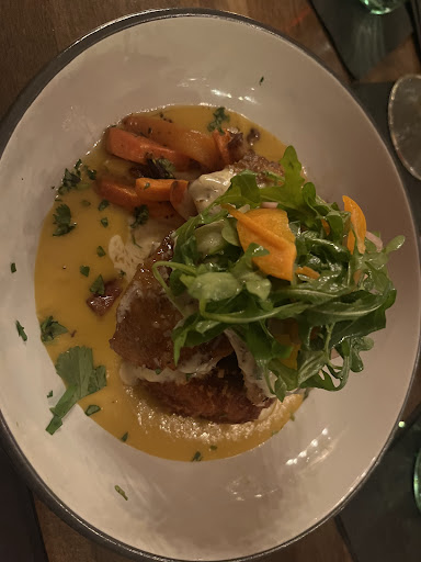 If you’re looking for a date night, celebration, or solo dinner- this is the place. Intimate but not too quiet, upscale but not snobby, excellent selections for a budget friendly “fancy” dinner or a place to spend that extra bonus from work and splurge. I started with the Smoked Burrata- what not to say about this dish. Presentation is immaculate. A cutting board filled with goodness. Burrata as the star, covered in a smoke filled glass that they remove upon serving to you, a bed of arugula and pickled onions, the crispiest best seasoned crostini I’ve ever had (it could easily stand alone as an appetizer) and a jam and balsamic smear to finish. The three times I’ve dined, this dish has been a MUST. My main course was going to be a snapper dish until Andrew pleasantly sold me on the daily feature. A modest trout filet seasoned with salt and cracked pepper. But what accompanied it was unexpected and beyond pleasing. A combination of charred zucchini, shishito peppers, pork belly, jalapeño sausage, pickled onions, all placed over a green curry and red pepper puree. The flavors literally evoked emotion. The only reason I didn’t finish the plate was so that I could take the rest home and eat it again tomorrow. Drinks- half priced bottles of wine say enough, but there so many amazing cocktails to choose from and sitting at the bar, I would love to stay and try each and every one just seeing them crafted. I finished with the White Chocolate Blueberry Bread Pudding and an espresso martini (a real one, no cream or kahlua in sight) Moist, firm, and filled with so much flavor, served so warm and fresh I had a bite that I thought would burn me which I promise is a positive when it comes to a bread pudding. The food aside, as someone that fear solo dining, Andrew made me feel comfortable, attended to, and had me relaxed and feeling at home in the first 5 minutes. His upselling is akin to very upscale high end hospitality, not a sales tactic. I wanted to spend the extra money on what he suggested because he explained the sale, or sold me on the dish- all in a natural conversation. I have never been even close to disappointed eating here, but now I’ve been WOWED. As a fellow service industry server, the bar for my own service has been raised. Do yourself a favor and get a reservation or walk in the door, you’ll thank yourself...