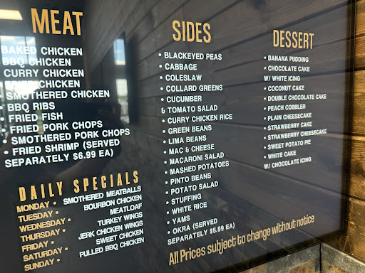 Read moreOne of the worst meals my husband & I have ever had. We each got a small plate and had ribs, collard greens, black eyed peas & cornbread and smothered pork chop, mac & cheese, cucumbers & tomatoes & roll. Our bill was around $40 and yet we went through a cafeteria line, carried our own trays, ate off of Styrofoam plates with the flimsiest plastic flatware I've ever seen. There was no lemon or butter with the packages of condiments and we had to go back and ask for it as it was not offered. The rolls & cornbread were served cold. I won't even go into the individual dishes except to say it was bad. Both of us are from the deep south and have eaten (and cooked) this type of food our entire lives. We spoke with another couple in the restaurant who were from Atlanta and they also were not impressed. The sweet tea was very good but it was not freshly brewed. I knew that the food was overpriced but was hoping that the quality would match the cost - it did not! Usually we will give a restaurant a second chance but not this one - not when we could not recommend even one of the items. I predict it will not last long in...