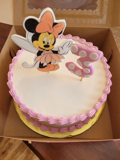 Read moreOrdered a Minnie cake for a Birthday Party. I had seen photos on Facebook and thought all the cakes from Flour Baked Goods looked so creative and decorative. I figured they must have the ability to make some really nice cakes. The 2nd and 3rd photos are what I sent for what I wanted. The 1st photo is what I received. This cake cost $70. My husband and I were so disappointed, not impressed like how we thought we'd be reacting. Clearly some work was put into the cake. The request was for flowers on top and a drizzle. This is sooooo plain.