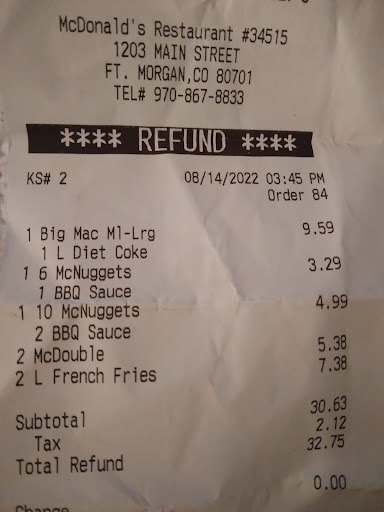 Where has customer service gone today? It doesn't exist in Fort Morgan, Colorado fast food restaurants. McDonald's is the worst. We've lived in Fort Morgan for just a little over a year and I can count on one hand how many times McDonald's has gotten an order correct. Just recently, I went through the drive-thru and ordered a quater pounder deluxe and a large diet coke. The screen info was correct, so I thought... no problem. The pay window person ask if I had the quarter pounder meal... to which I told her what I did have and she changed it. on to the next window.... the girl at the pickup window proceeded to asked me what I ordered, so I told her and figured she would get it correct... noooooo. I got home and got a quarter pounder and a diet coke. not a quarter deluxe. So I turned around and took the sandwich back. they said they would make it right, well how about making it right to begin with? anyway, I got a refund an left. I don't need McDonald's that badly. Also, I should mention, there was a man sitting outside that asked me if they got my order wrong too. when I told him, they did, he said he had been sitting there for about 5 minutes and I was the third person to pull up with a messed up order. To me, that's just not good enough. If I were the owner of that franchise, I wouldn't want my business to treat their customer the way they do. There is no customer service there. I have many other examples if you want me to share. The staff for the most part are rude and act like customers are not needed. I realize your McDonald's is the only one in town and if you want McDonald's, you'll just have to live with the incompetence and rudeness. .