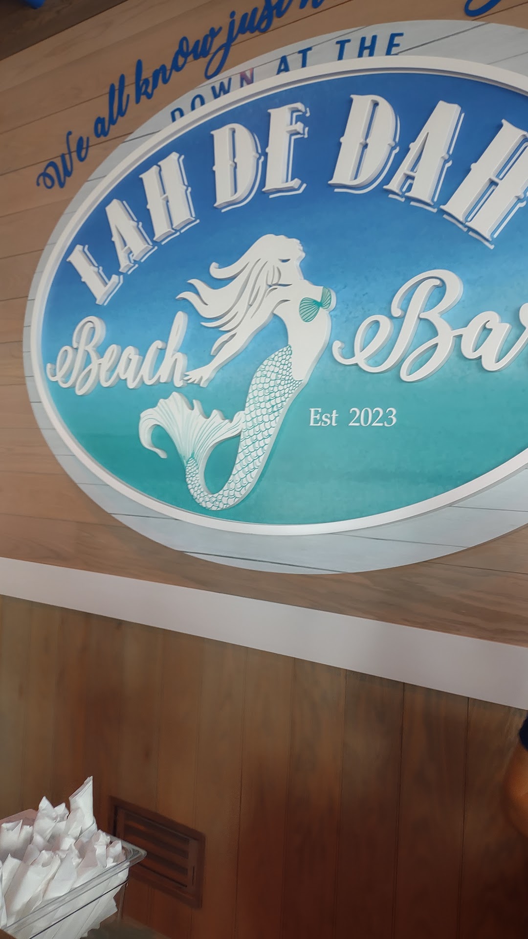Read moreWe are locals. Our family spends Christmas on the beach every year to eat local. This was our first trip to La De Da Beach Bar. There is indoor seating and also picnic style on the beach. It was raining and the garage doors facing the beach were open and felt very drafty indoors, bring a jacket. There are several TVs and there was live entertainment. The tables are mostly high top with comfortable cushions. The staff were friendly and attentive. Our drinks were never empty. Only accepts credit cards. No cash. Parking lot on the beach entrance $5 per hour between Lani Kai and outdoor pool area , La De Da Beach Bar Starters: 4/5 stars beach fries: white cheese sauce, cheddar & Monterey Jack cheese, chopped smoked bacon, sour cream with ranch dipping sauce. These were a small batch but adequate to share and not be too filling before a meal. Shrimp Tacos: 2/5 : grilled shrimp( seasoned well and chopped) cilantro lime cabbage( I could not taste ANY lime , it was very dry and unflavored) with matcha sauce ( bland not spicy at all) There were 3 tacos in a soft Gordita like shell served with what appeared to be bagged typed tortilla chips and a small ramekin of salsa. I would not order this again because it was so dry and flavorless. If you are wanting to order this I recommend asking for a lime and extra salsa for it. Wagu Steak Sandwich: 3/5 sauce was great on the sandwich, came with French fries. Beach Burger: 3/5 typical burger and not asked about how we wanted it cooked , which it appears well done. Came with French Fries and a pickle spear. We would dine here again and try other items on the menu, as we are local due to the service was outstanding and atmosphere is scenic and...
