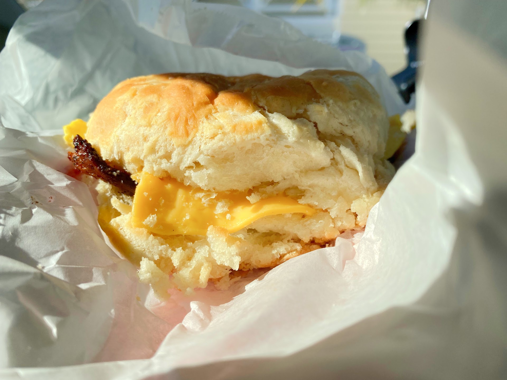 We tried their daily special as if itās made daily, it has to be perfected and we honestly had no idea what we had gotten ourselves into. The biscuits are home made, HUGE and so soft and amazing! The sandwich itās self was complimented with excellently cooked bacon, a great folded egg, a slice of processed American cheese and a tomato. It came with coffee and a cinnamon roll which has to be the size of my head. Dear Lawrd was it huge!