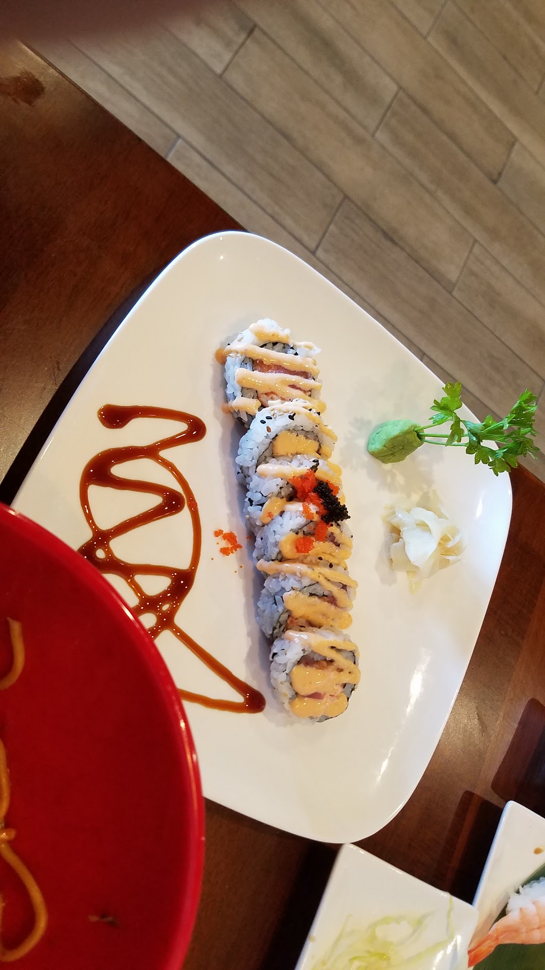 My husband ordered the Tonkotsu ramen, I requested the teriyaki chicken bento box, and we split a red lady specialty roll. My husband specifically requested a trip to this restaurant so he could try the ramen, and he was not disapointed. I tried some of the broth, and it was really flavorful. The only thing I noticed that looked a bit off was the shoyu egg. Ramen we have tried in the past usually has a semi-soft yolk, and this one was fully cooked. This is a pretty minor issue, but I was a bit disapointed because I was looking forward to stealing the egg for myself.
