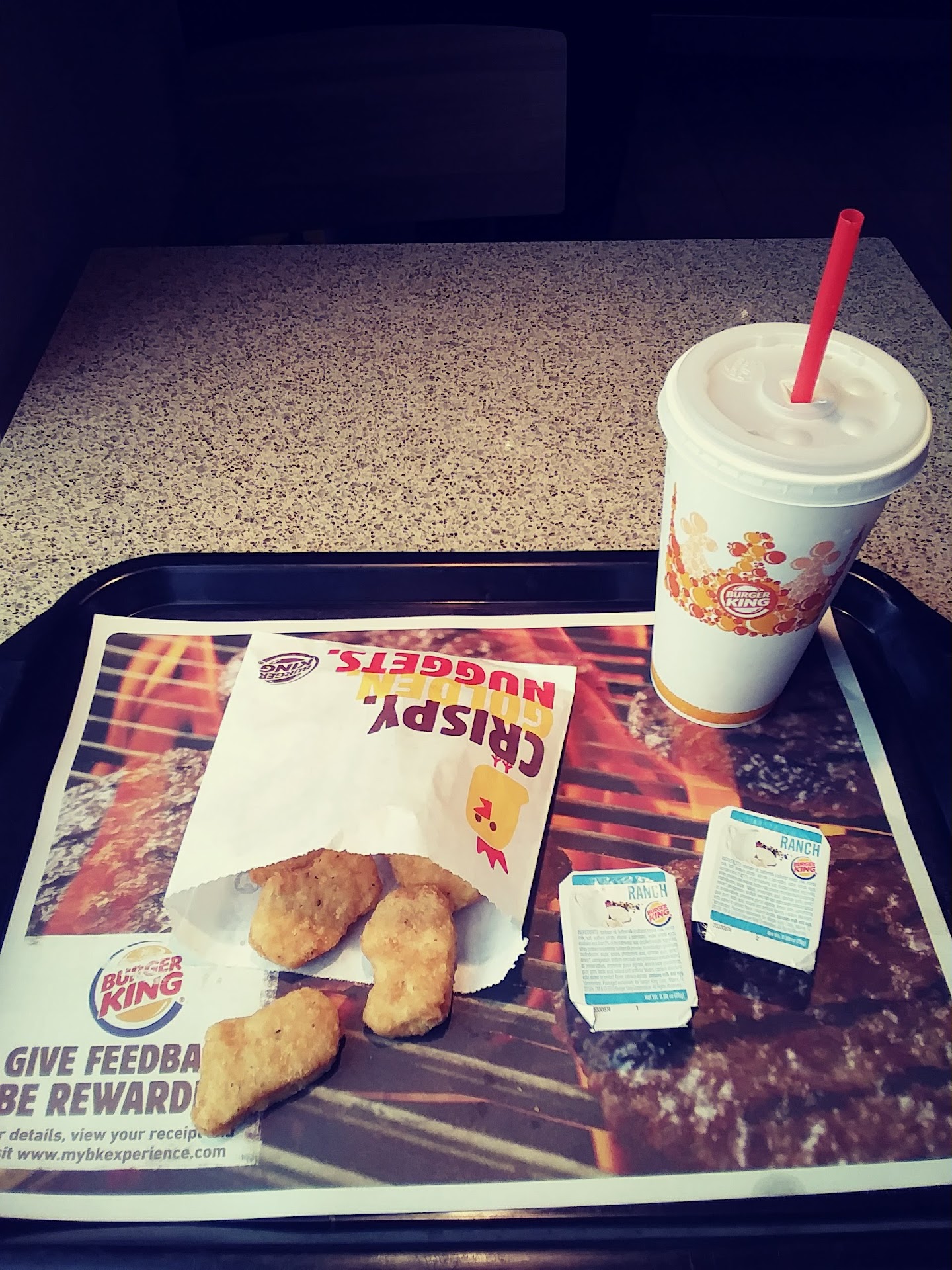 Read moreDid you seriously come to read a review for Burger King? It's just a Burger King. Yes they have burgers and apparently are the king of said burgers. But there's more, they have chicken, salads, fries, some allegedly onion-tasting ring-shaped things that aren't really onion rings (don't fool yourself, just accept them for what they are).