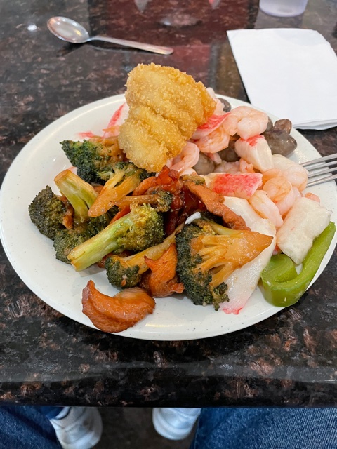 I don't eat a wide variety of Chinese food but I do go for their SEAFOOD DELIGHT, CHICKEN AND BROCCOLI, MEIN FUN, MUSHROOMS, FRIED FISH AND SEVERAL VARIETIES OF CHICKEN. They also have a SUSHI BAR that includes ONE item I love to eat; cooked then ice cooled shrimp (on the shell). That bar is included in the buffet. The lunch buffet is when I usually visit because of pricing and my desire to eat my one meal of the day before 4 P.M. after which the price increases a bit. They charge (January, 2022) $10.99 for the buffet-a very appropriate and fair price point in my opinion. I usually finish my meal with ICE CREAM from their freezer and always leave completely satisfied.