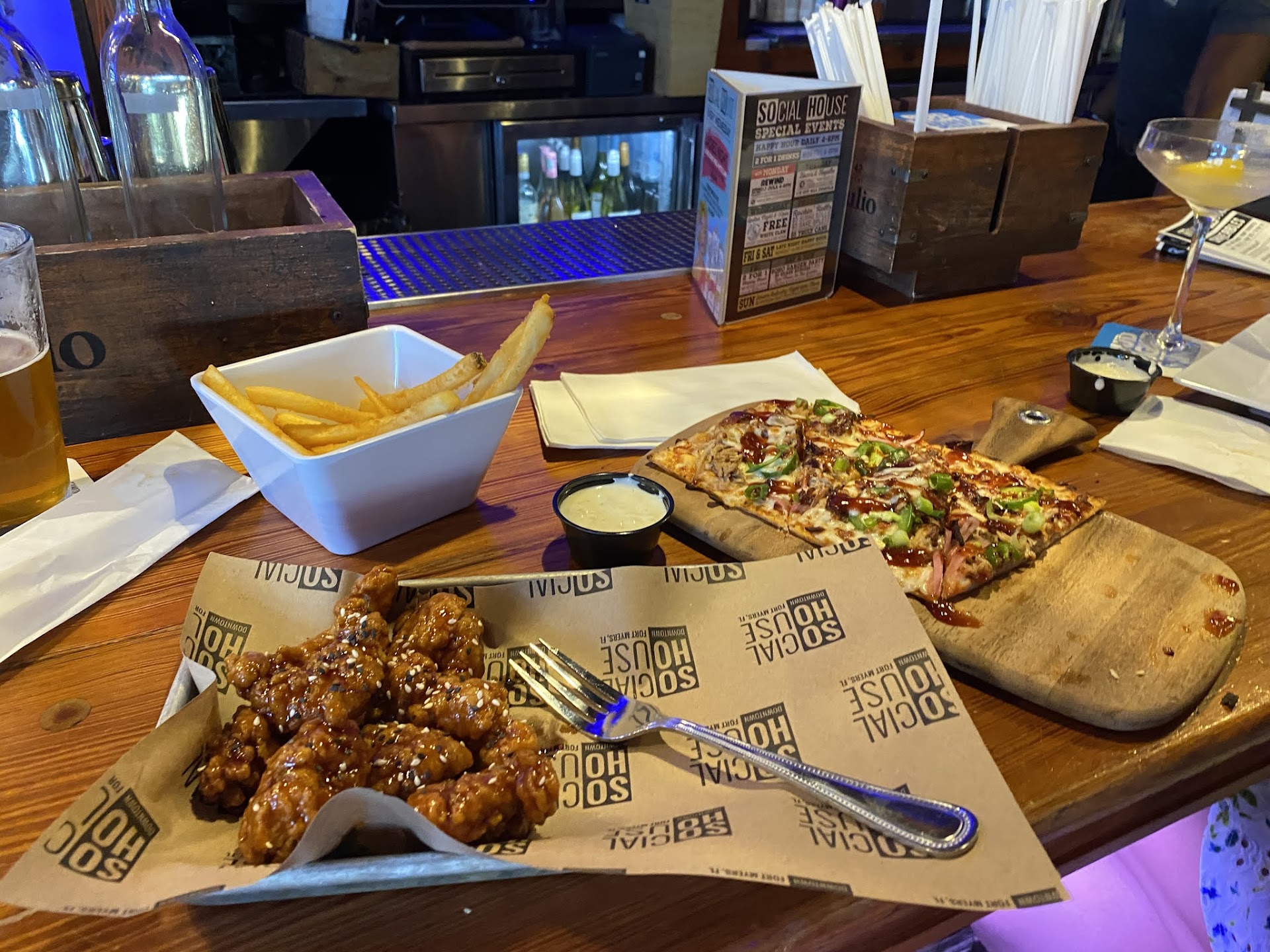 Friday, my friends and I planned on staying for a just a drink and to get a feel for the place. We were pleasantly surprised. The service was great, it was a waitress-in-training, and there wasnt a downside to our experience. The free appetizers were delicious--genius method to get your food recognized, in my opinion, because...