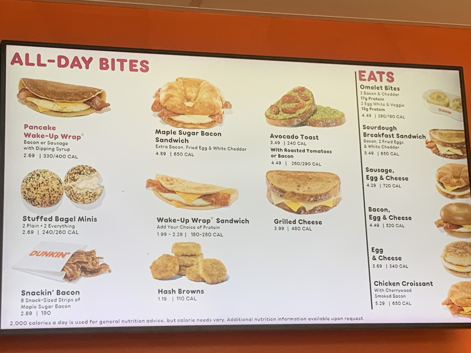 Okay well here you go dunkin worker!! Screenshots of your own menu and nutrition facts to enlighten your work skill...