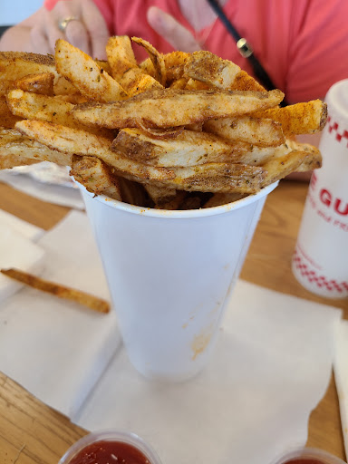 After we received our food, it was of excellent quality. It's a straightforward experience without a lot of interference from any flavors you don't specifically ask for. Hamburger patties taste like beef perhaps mildly salted. Plenty of topping options available. The fries are great. Fresh and seasoned with a Cajun spice blend. I tried my wife's shake, but didn't find that it really lived up to the hype surrounding it. I'd had as good or better in plenty of quick service establishments, but it was fine. Drink machines were the Coke Freestyle models, which are great, but they were out of product here and there.