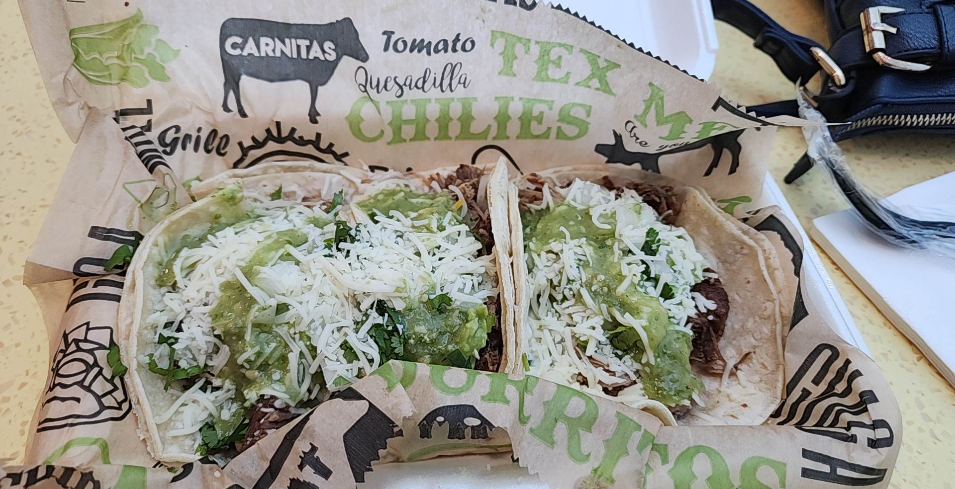 Read moreFirst time here. I ordered there chicken quesadilla. If it's your first time, be aware that they will point towards the additional items and not tell you that it is extra, just ask you if you want any of the additional toppings. I got a cup of water as well. Unfortunately, I was not aware the extra toppings were an additional dollar twenty-five which I don't mind paying I just didn't know about the extra charge. The cashier charged me a dollar fifty for my cup of water which I immediately went back and got my money back. The food was pretty good, but their hot sauce...
