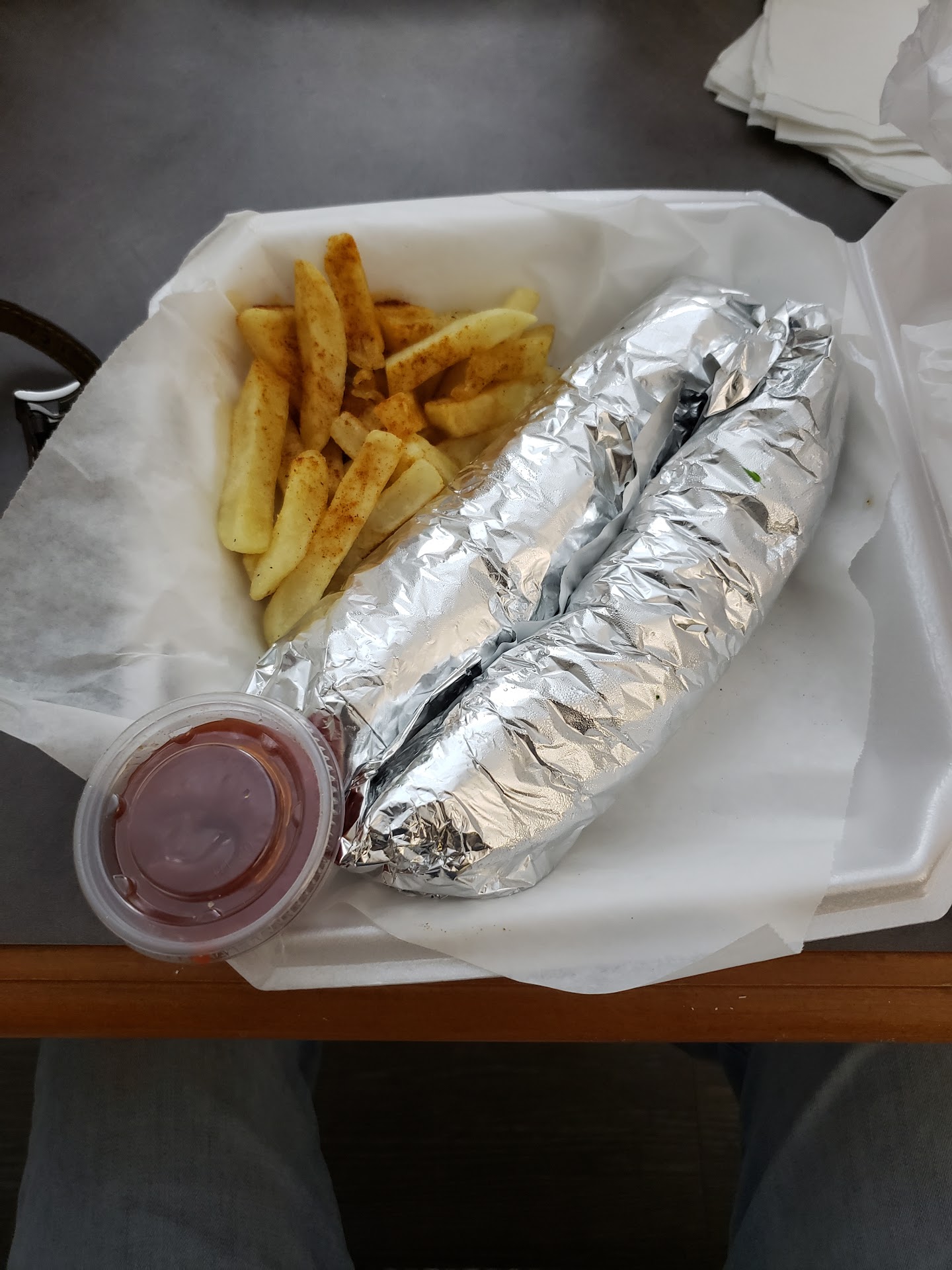 I ordered the chicken schwarma sandwich combo but they had no diet soda so he offered a chai tea instead. My husband ordered the lamb kofta schwarma sandwich. Food took a long time and portions were very small for the price. They tasted ok but we've had much better.