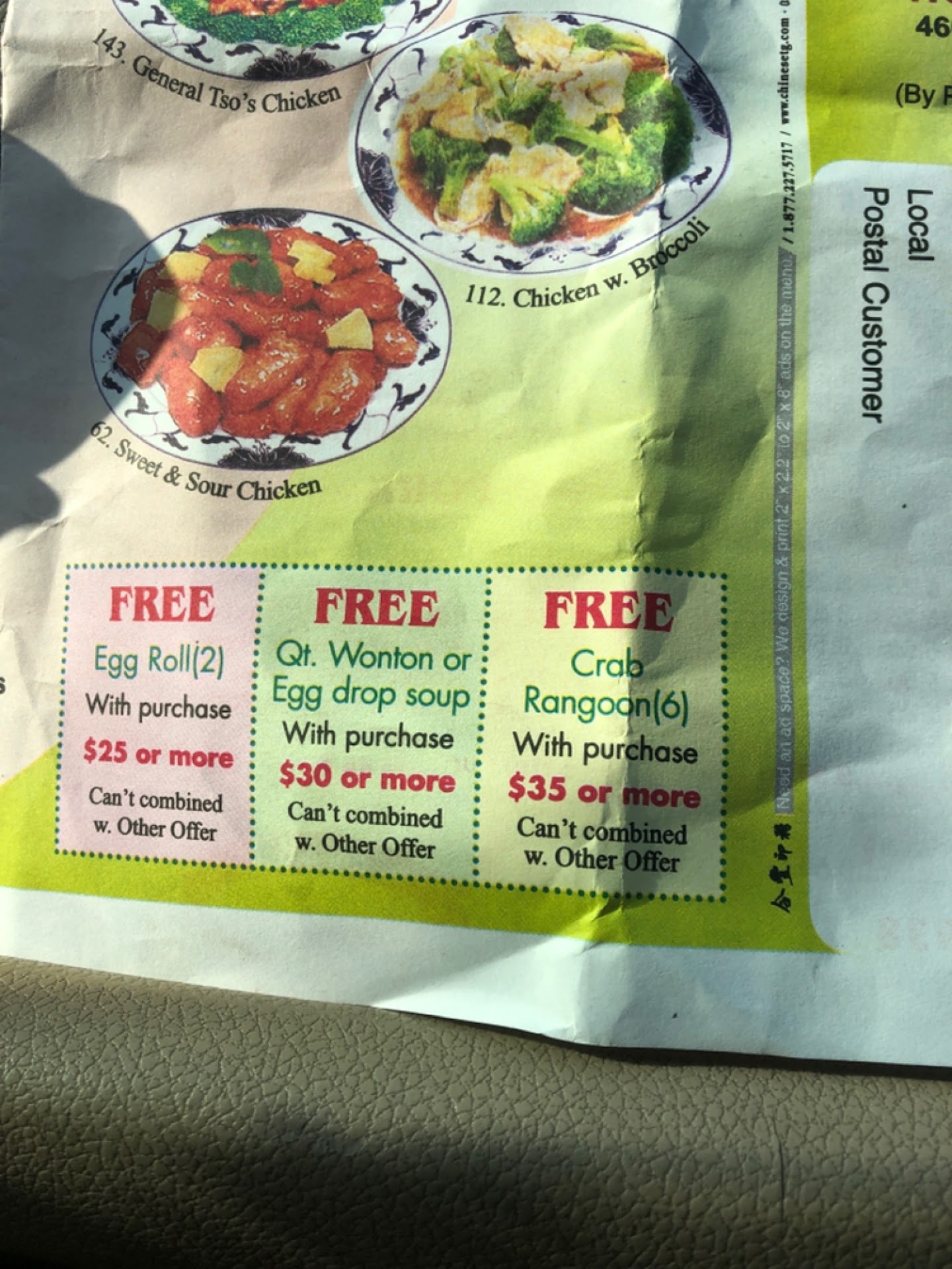 Ā Ā Ā Read moreI wish I could rate this with 0 stars!! I just moved to Fort Myers and I was happy I found this Chinese restaurant near my house and we went with my husband and my son to try it out, first of all the woman that takes your order Iām guessing is the owner because on the order slip she calls her self ābossā well anyway, I ordered the orange chicken and my husband the spare ribs we were going to eat there and we told her and she put everything to go anyway.. we didnāt care and we still dine in! And that was the best decision we took because as we were eating there was hair in my husbands rice!! So politely we took the food to her and told her there was hair on the rice and that we would like another plate of food, she didnāt say anything because she was on the phone during the whole visit but she took the plate! After 30 min or more of waiting I see her packing another order so I approach to her and ask her if our food was ready, she said that wasnāt her hair so she was not giving us another plate of food, so I told her well my hair is blond so it canāt be mine!! And the hair was underneath the rice and it was her hair!! So I told her to give us another plate of food or the money back! So she flipped out and started yelling at me saying that she wouldnāt give the money back and if I wanted the food I had to pay for it again!!! Oh my God I am so frustrated because we lost our money and our food... I stood there for 20 min trying to tell her that it was wrong! Even the guy at the kitchen told her to give us another plate of food and she also yelled at him!! Horrible experience, please if you donāt want to be treated like a piece of poop...