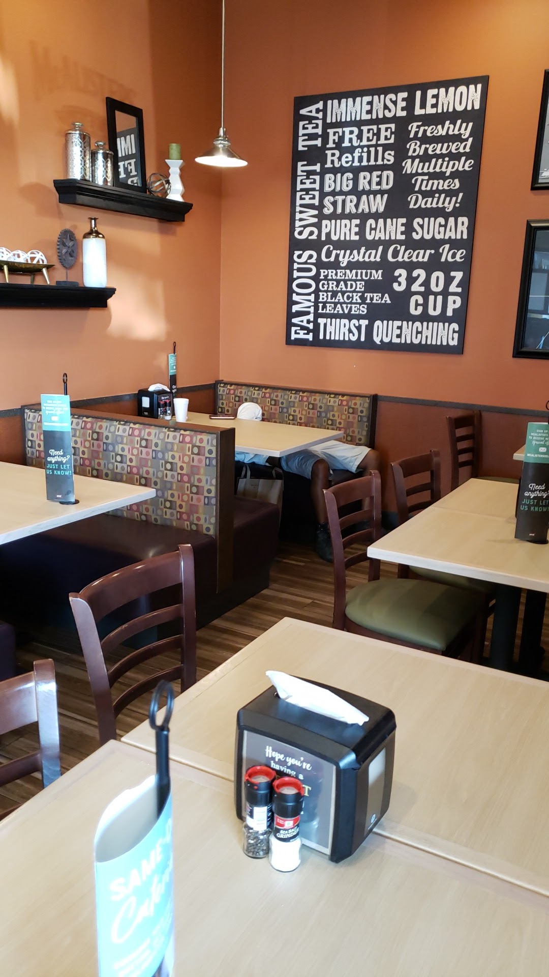 The atmosphere at McAlister's Deli was also great. The restaurant was clean, comfortable, and had a cozy feel to it. It was the perfect place to enjoy a meal with friends or family.